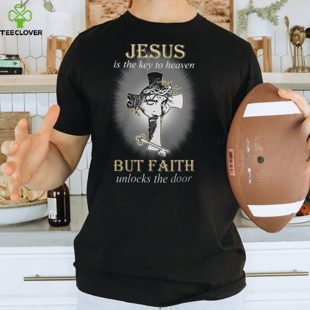 ()Jesus Is The Key To Heaven But Faith Unlocks The Door Tshirt. Categories of this T-shirt is teejeep, Jesus Is The Key To Heaven But Faith Unlocks The Door Tshirt from Teejeepique designs β Large assortment β Comfortable β High-quality β Easy to care for β Available in a range of colours and styles for men, women β Shop now β