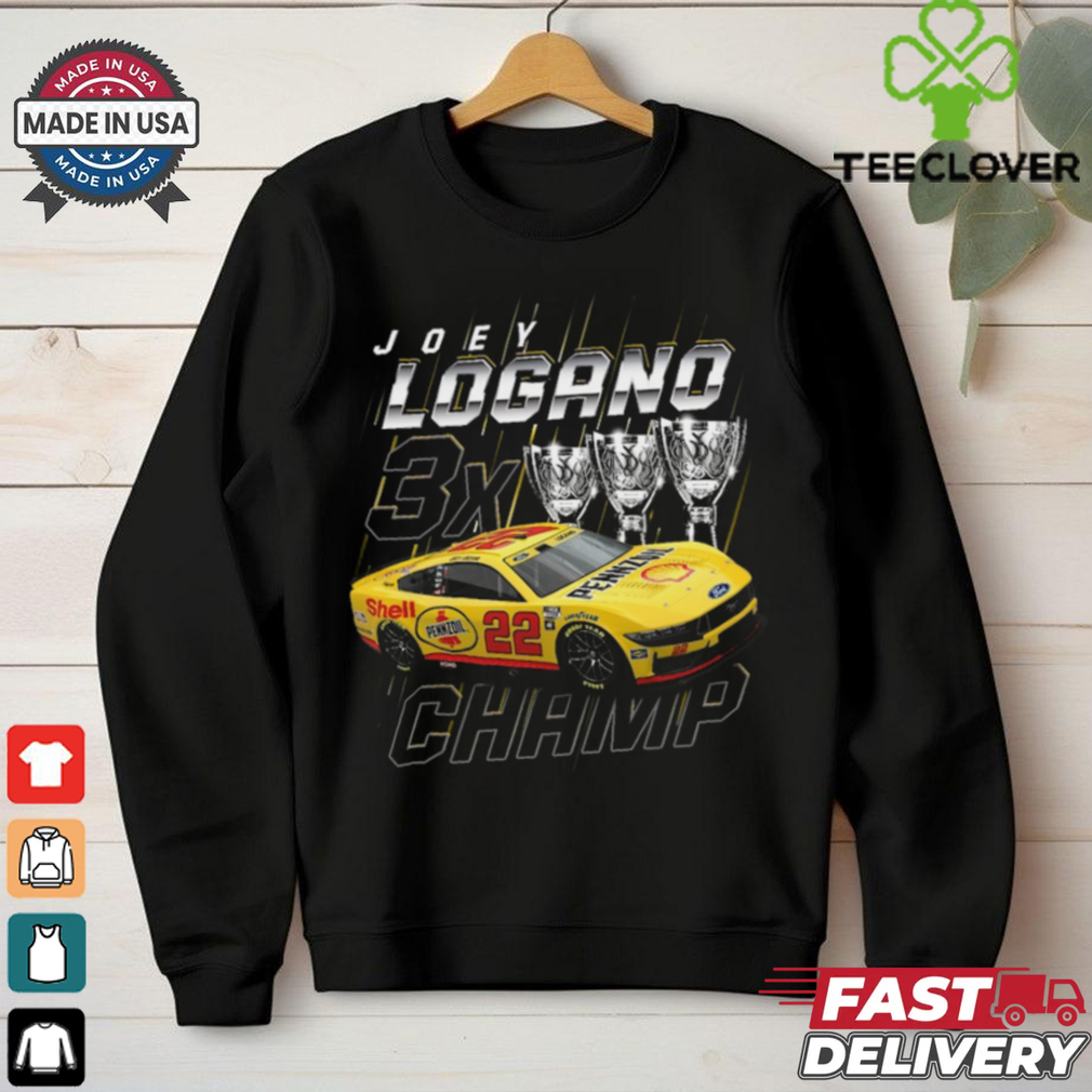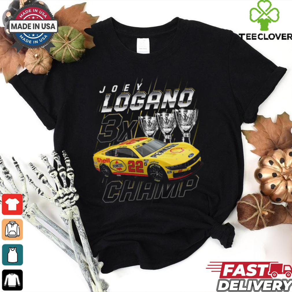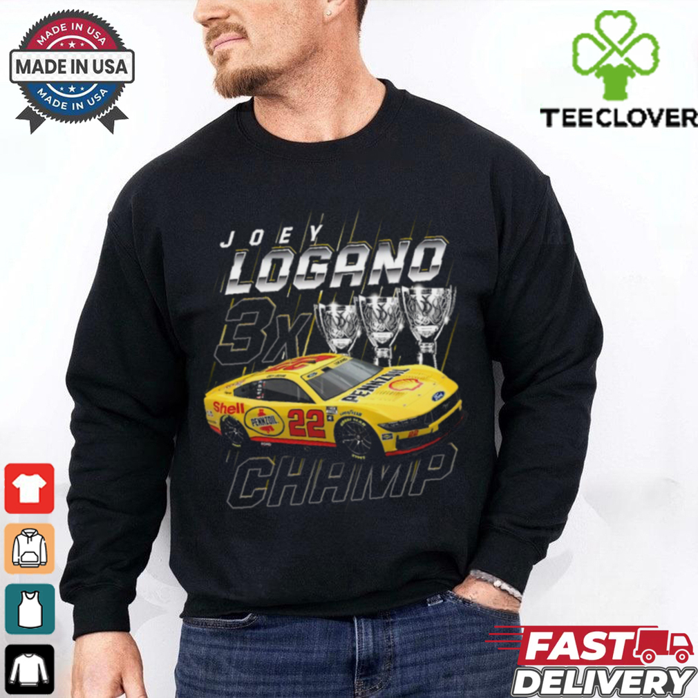 ()Joey Logano Team Penske Three Time NASCAR Cup Series Champion Trophy T Shirt hoodie, tank top, sweater and long sleeve t-shirt: best style for you