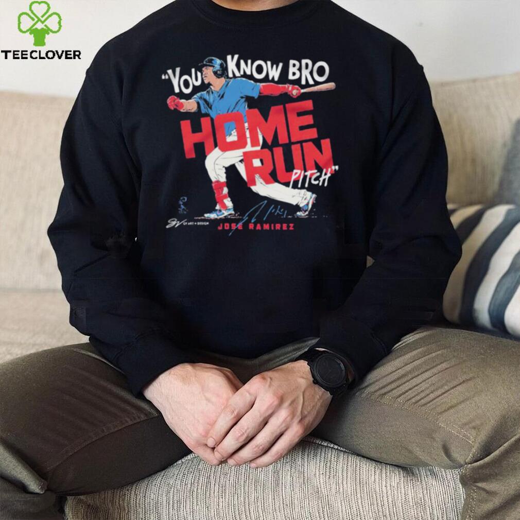 I think it really depends on the Jose ramirez you know bro home run pitch signature T shirts. It’s entirely possible that this kid has been an amazing big sibling and has already learned a lot about taking care of their baby sibling. They maybe weren’t trusted to use the stove 2 months ago, but, if since the arrival of the bambino, they’ve stepped up and shown their capabilities when it comes to being a caregiver, it stands to reason that the parents might see that the kid has what it takes to keep a stationary infant alive for 4 hours. I really don’t see what could be a problem here. Unless the 13 year old gets some weird devious notion to take the baby our for a walk, or try feeding it marbles dipped in honey or something ridiculous. It will just lay there and MAYBE need a diaper change and a bottle. Some kids can handle responsibility, some can’t. 13 is just one of those ages where you can’t make blanket assumptions because they are becoming young adults and some mature faster than others. But one thing we don’t know is- does the 13 year old WANT to watch the baby? And if they successfully do so once, is it going to become an indefinite responsibility forever? That would not be fair.