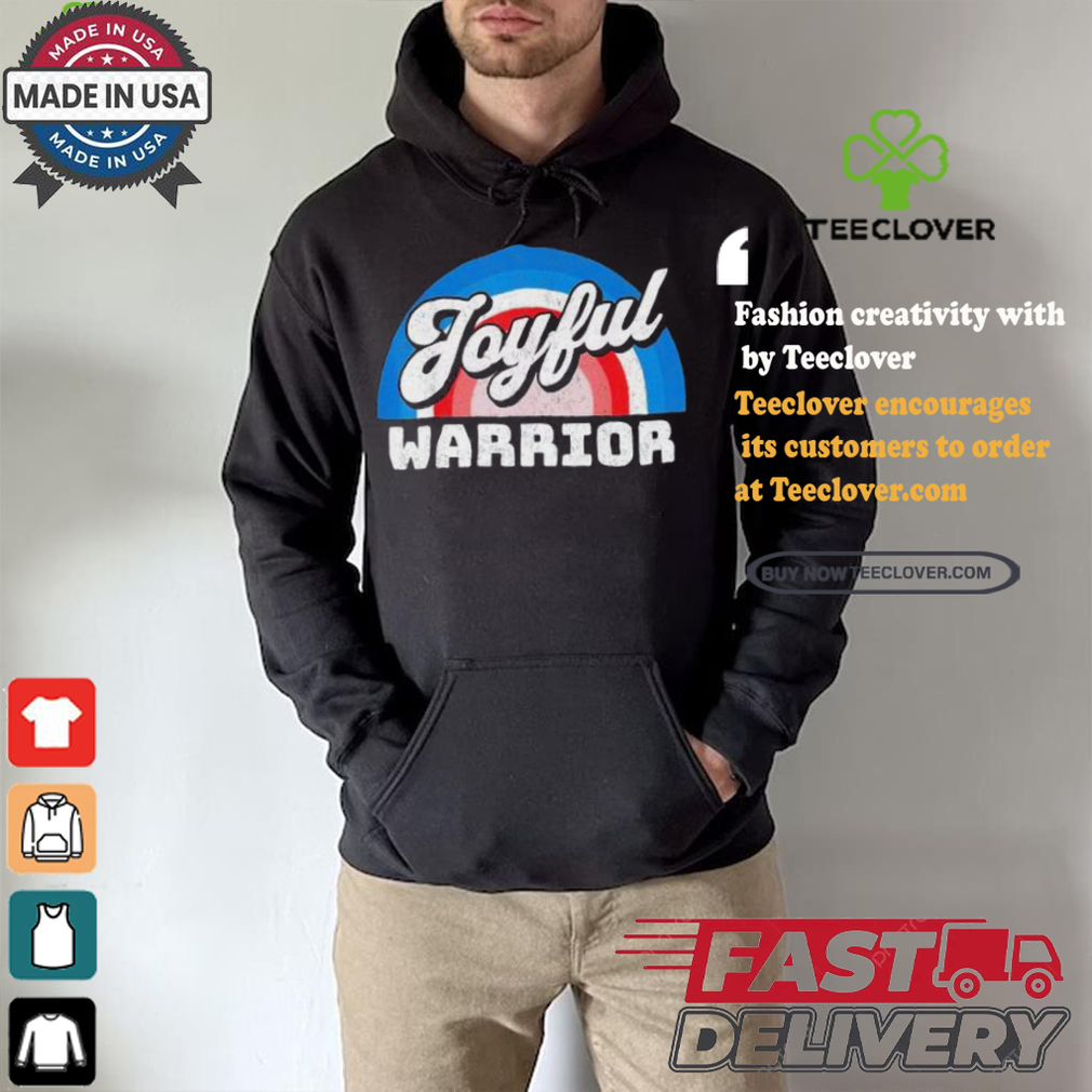 When I was quite small, my family were Jehovah’s Witnesses. My big brothers remembered their Catholic beginnings, they remembered magical Christmases. My little brother and I did not, we’d never been Catholic yet. We used to get very sad that all of our friends had lovely Christmas or Hanukkah, and we did not. We’d pout. My big brothers tried their best to console us. Our best friends lived across the Joyful Warrior Harris Walz T shirt . Their dad was not home much, but he was a very stern man. He had quite the temper (when we grew up, we realized that he was always drunk, but when we were small he was just scary). He had a Doberman called Rex who we were all also terrified of. One year, I’m probably four or five, we’re sitting in my brothers’ room wistfully staring out the window at our friends playing with their new toys, wearing their Christmas sweaters, all that. The oldest two brothers, maybe trying to console us, convince us that we do not want Christmas at all. They tell us that Scary Dad is Santa Claus. They tell us that Rex the Doberman is actually Rudolph. Would we really want Rex landing on our roof? Would we really want Scary Dad judging whether we were naughty or nice, and sneaking into our house while we slept?