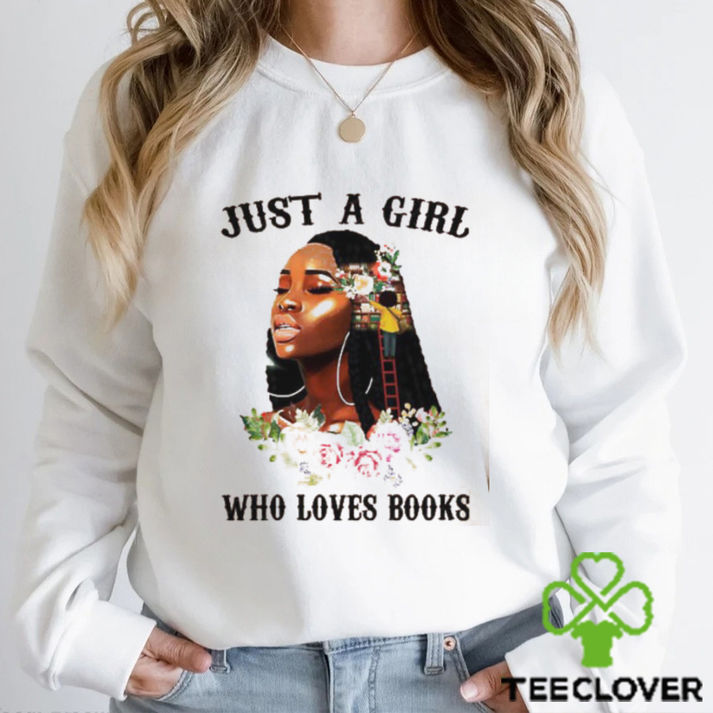 ()Just a girl who loves book flower library girl black queen png design digital t shirt hoodie, tank top, sweater and long sleeve t-shirt