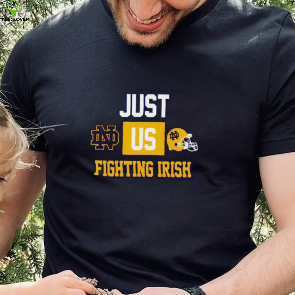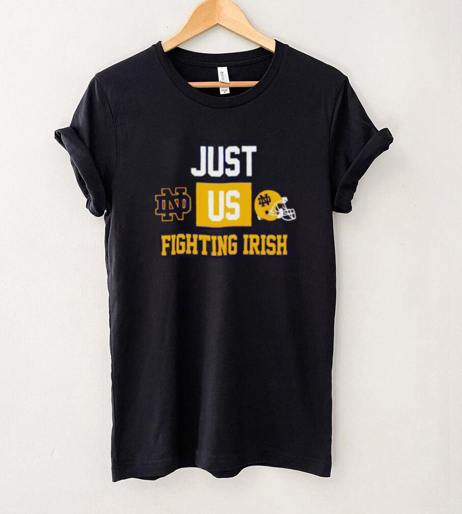 ()Just us Notre Dame Fighting Irish helmet logo shirt