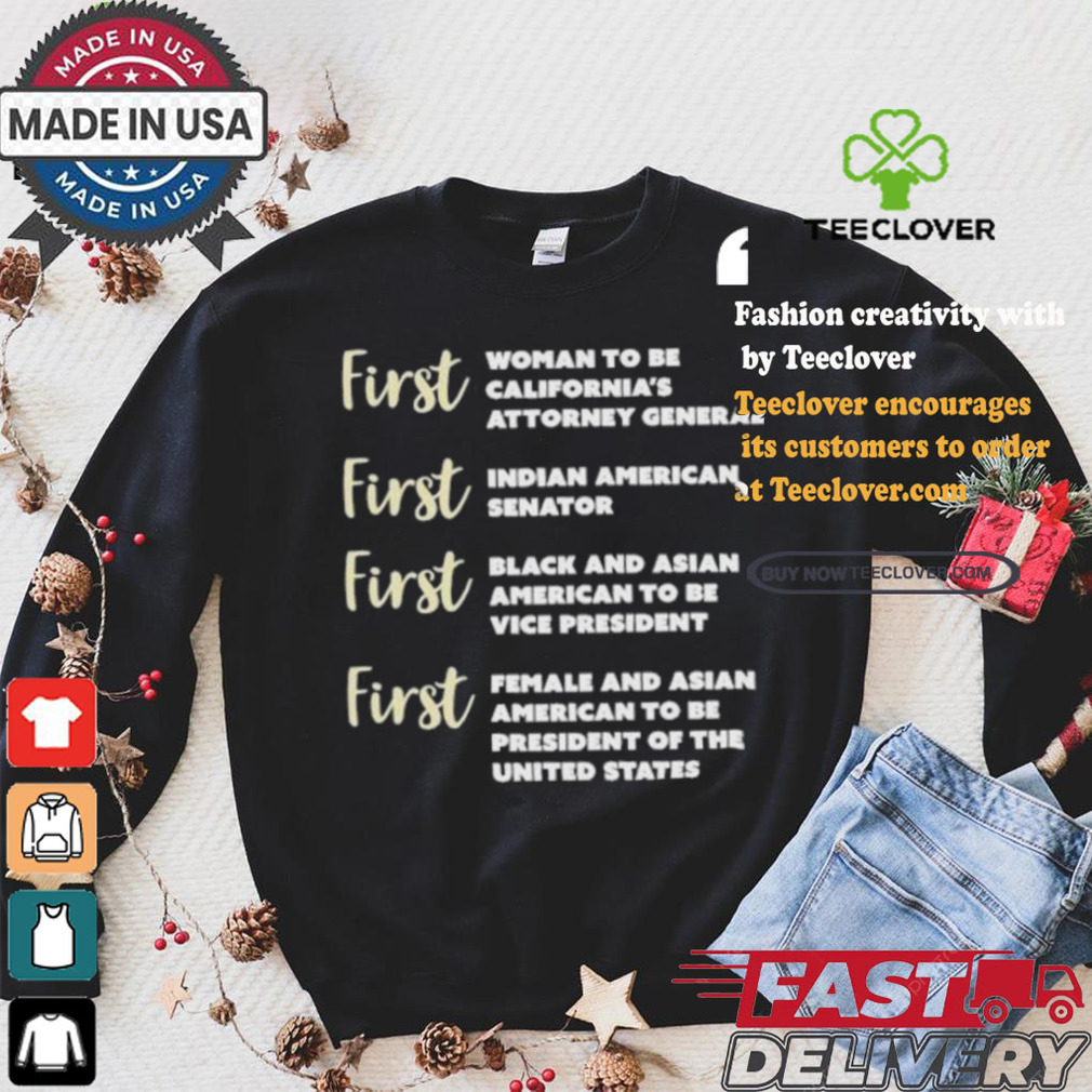 Kamala Harris First Woman To Be California’s Attorney General First Indian American Senator First Black And Asian American To Be Vice President T shirt