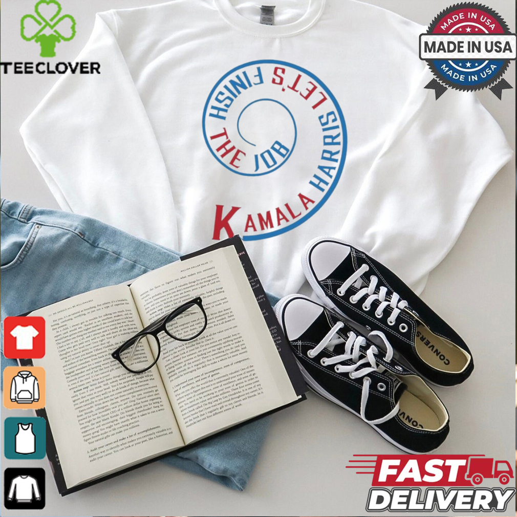 My cat, Tealc, is gone Kamala Harris LetS Finish The Job Election 2024 Shirt for three years was so attached to me it was eerie. I was going through a stressful time years ago and it had started to affect my sleep. On several occasions I would wake up gasping for air and full of anxiety. My wife would wake me up out of a dead sleep sometimes and tell me I had stopped breathing. One night while I slept in had apparently done just that. Most of this I learned from my wife who witnessed it since I was asleep.