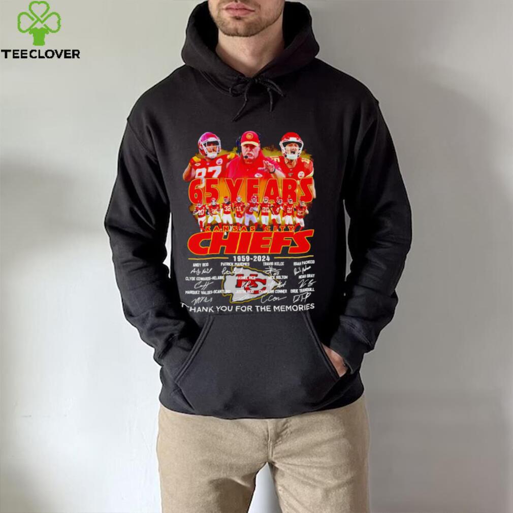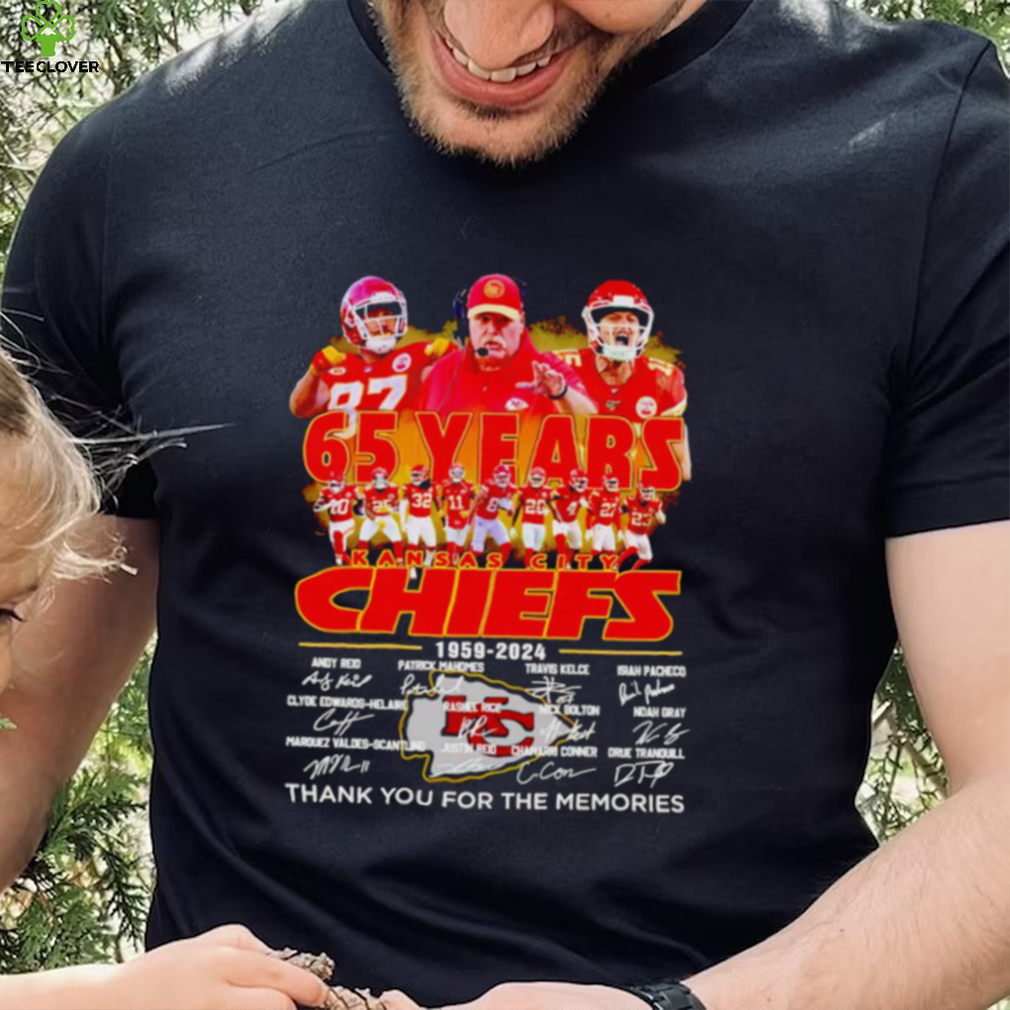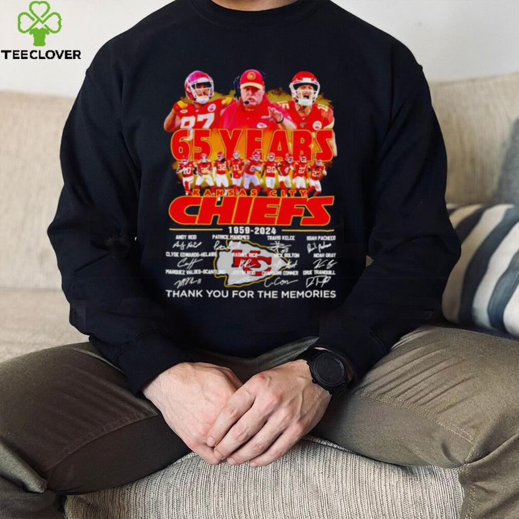 NASA engineers designed a Kansas City Chiefs Andy Reid 65 years 1959 – 2024 thank you for the memories t shirt , cone-shaped capsule far lighter than Vostok; they tested the craft with chimpanzees, and held a final test flight in March 1961 before the Soviets were able to pull ahead with Gagarin’s launch. On May 5, astronaut Alan Shepard became the first American in space (though not in or bit.