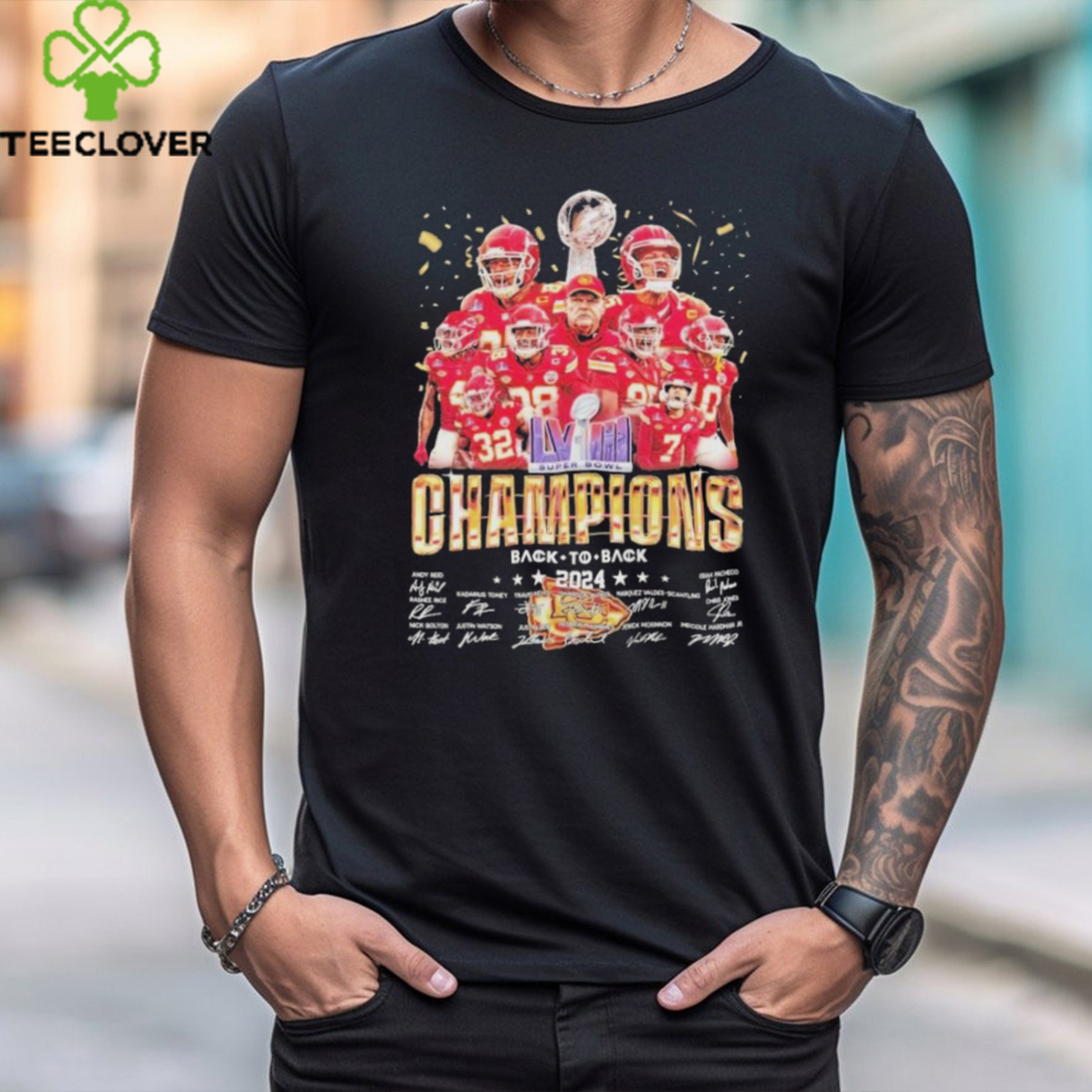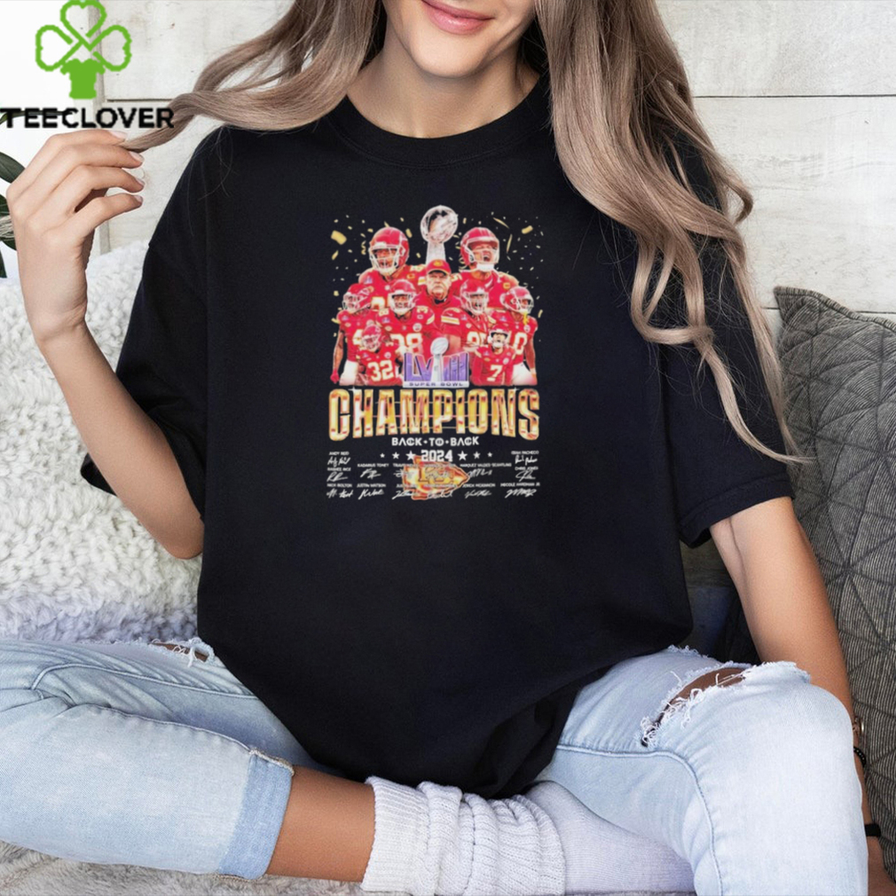 ()Kansas City Chiefs LVIII Super Bowl Champions Back to Back 2024 Signatures Shirt