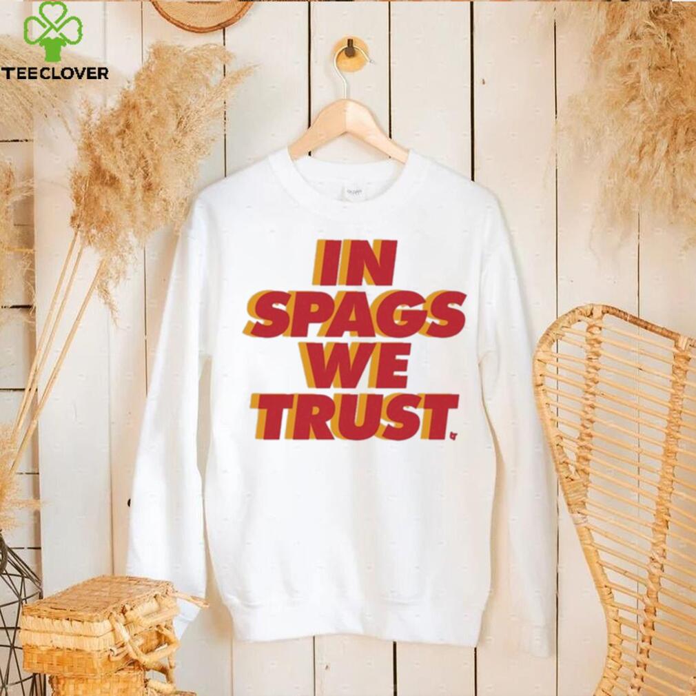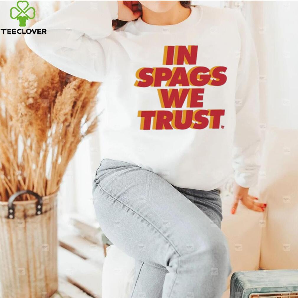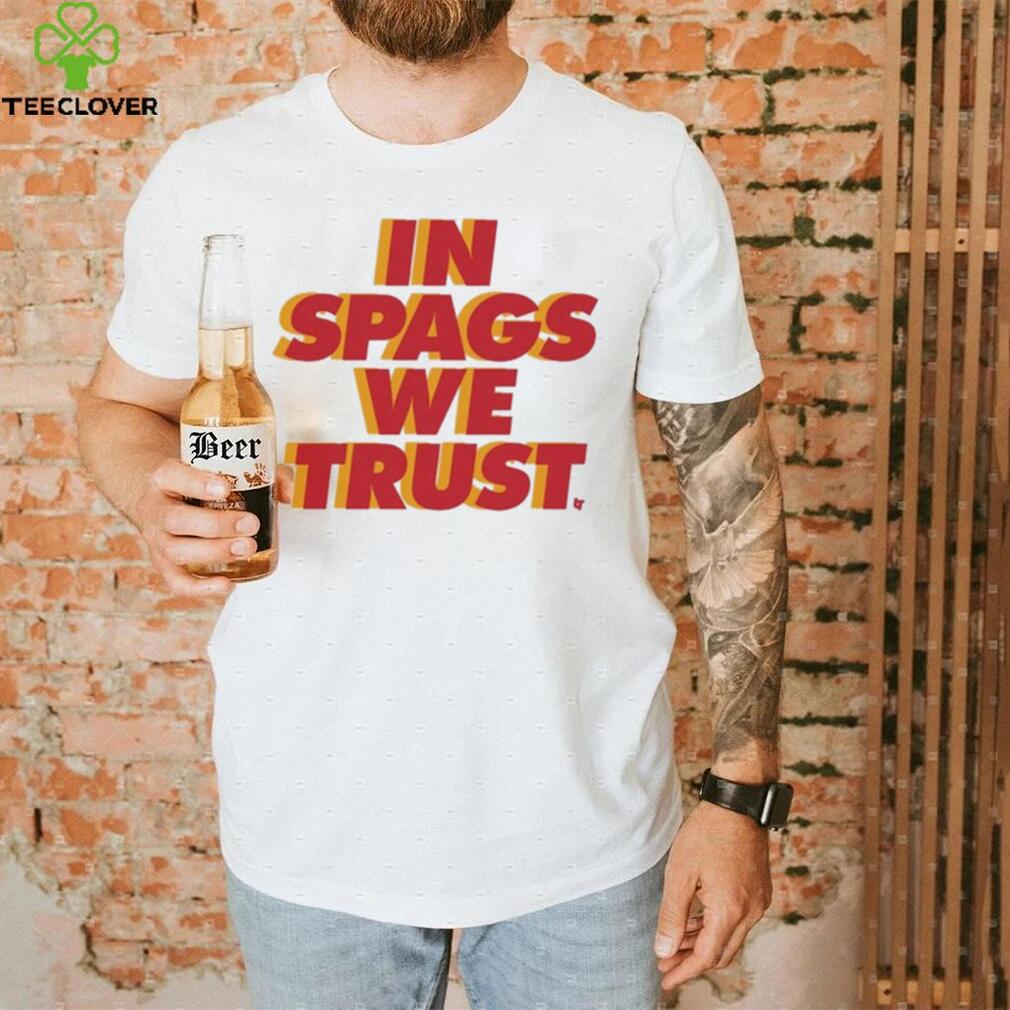 Geography. Pick the local team. If you are in say Miami, congratulations you can be a Dolphins fan and if you want to support teams across several levels, then the Dolphins for the NFL, Miami Hurricane among the power college programs and Florida International Panthers in the so-called Group of 5. If you are in an area not near an NFL team pick a Kansas City In Spags We Trust t shirt college and could even find enjoyment following a small regional team that plays in Division II or III or Division I FCS. Aesthetic reasons. You like the dark blue and orange combo of the Denver Broncos then that can be your team (also opens up the Boise State Broncos in college football). I’m a Denver Broncos fan and Kansas City is a Kansas City In Spags We Trust t shirt rival but I have to admit I like their home uniform. Like red and black? That gives you the Atlanta Falcons in the NFL, Texas Tech and Arkansas State and Cincinnati just off the top of my head. I don’t like the University of Texas but I happen to think their road uniform is one of the best in college football.