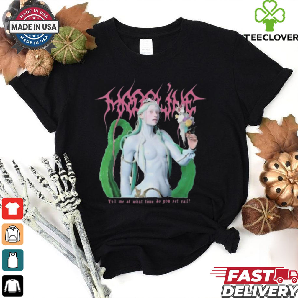 Much more as well as a lot Kiki Rockwell Madeline 2024 Tell Me At What Time Do You Set Sail t shirt well-known T-shirts were actually tailored and also produced throughout the Psychedelic period, consisting of even more as well as extra home-made practices. Band T-shirts came to be an additional exceptionally well-known type of T t-shirt, inexpensively published as well as marketed at real-time jobs as well as gigs of the time, the practice proceeds to the current, band T shirts are actually as well-known as ever before, nonetheless the rate of all of them has actually increased considerably.
