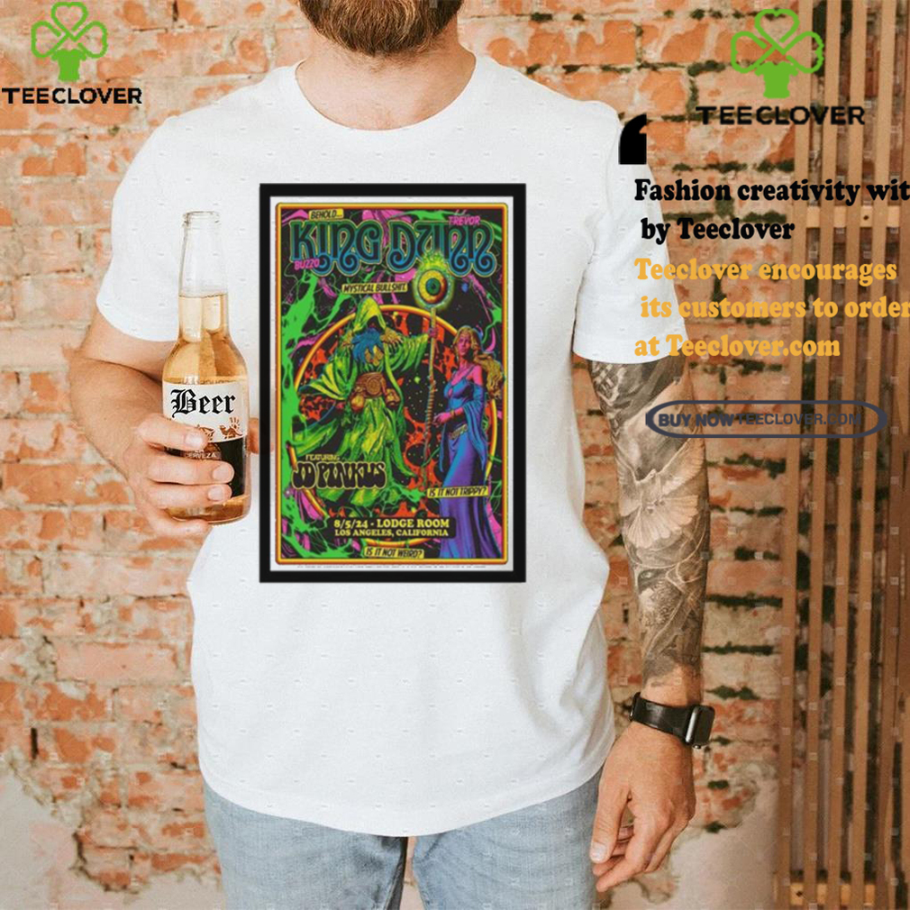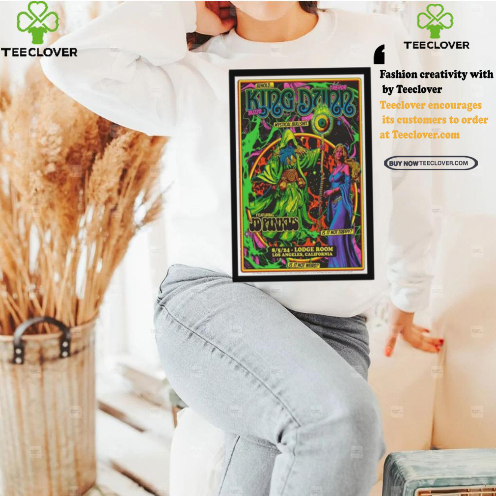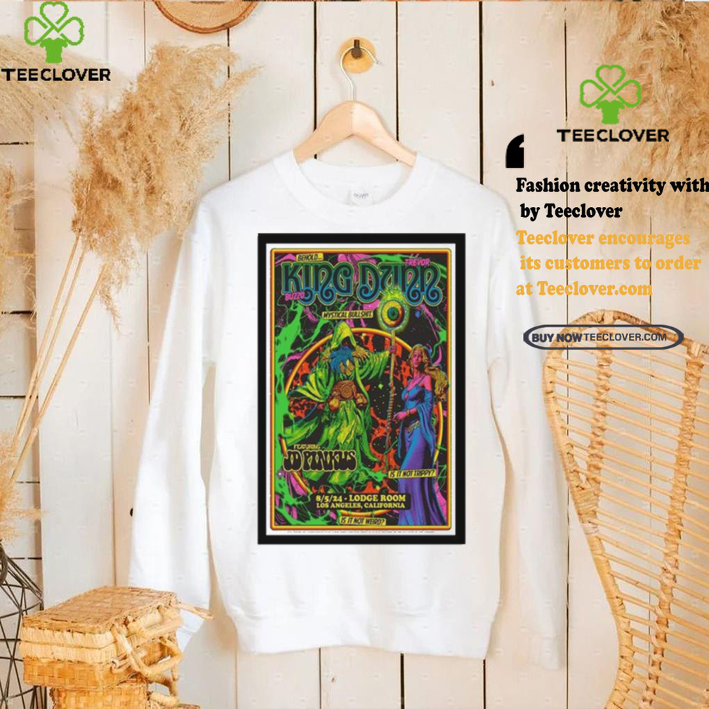 Nothing like falling on your sword for the Emperor with No Clothes. Trump has been relentlessly attacking Kemp for not stealing the King buzzo and trevor dunn in los angeles ca on august 5 2024 t shirts. Then again, cult members go where Dear Leader is. Whether it’s Washington DC, Waco, or Guyana. You just go. These past, grueling 4 years have obviously shown us not to expect to find an ounce of integrity, honor or courage in a Republican politician. They all suffer from Trumpholm Syndromeβ¦ However, Elite Legal Ninja Strike Force With Laser Eyes, Jenna Ellis, who reportedly contacted Dr. Oz asking if it was possible that Rudy Giuliani could have transmitted his covid to her when he farted in her fucking mouth on live television, was not amused. Is this an event that employees, and not the company, are organizing and funding? If yes, distribute a general email message or flyer, inviting people to attend and contribute. State that the event isn’t employer-sponsored. Also try to word the invitation so that it’s about including people, not about hitting-up for contributions (even though the “user fee” does need to be clearly stated). If the employer is hosting the party, the company should pay for everything. It’s very bad etiquette to sponsor any kind of event and expect guests to foot the bill; this is true for any business or social occasion.