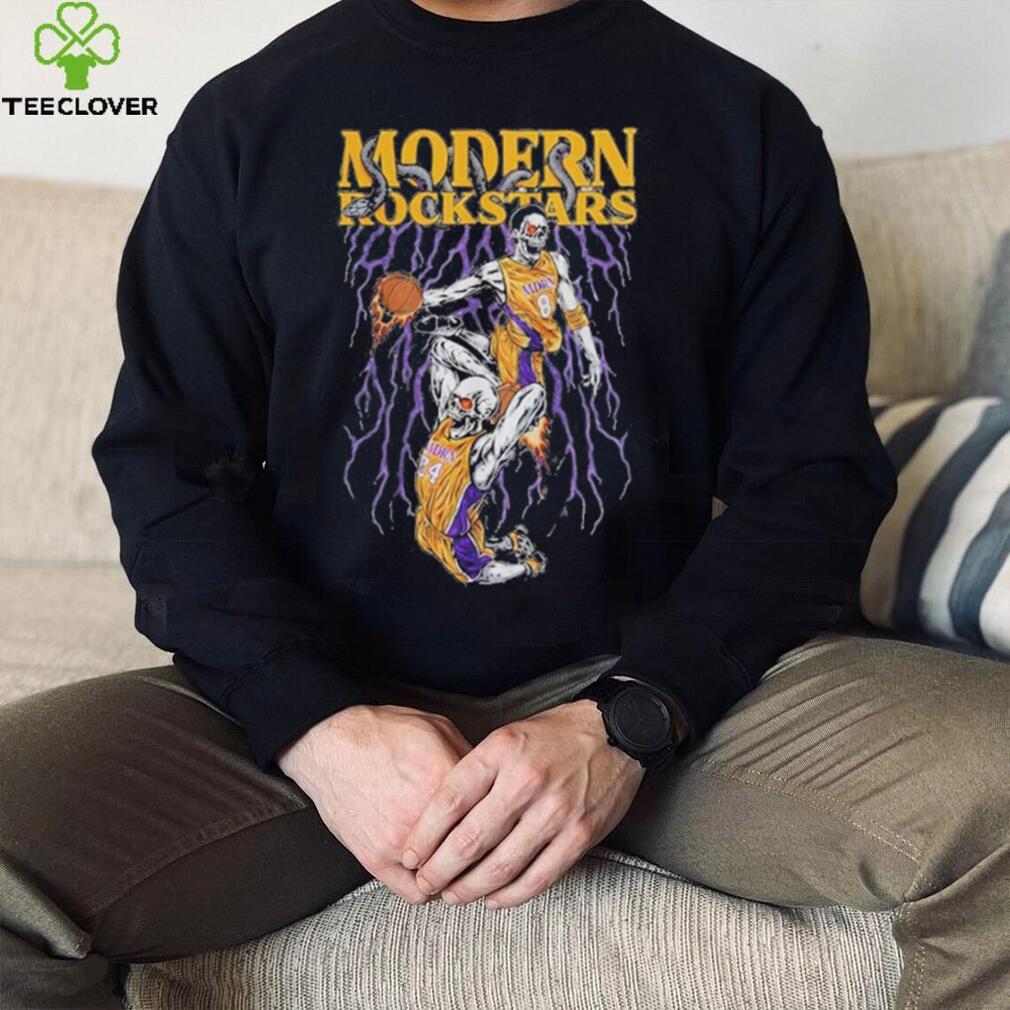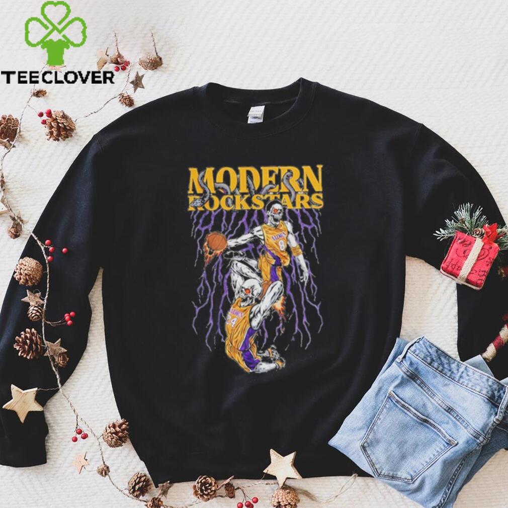 I do not remember Christmas Day itself that year, but the events around theKobe Bryant Modern Rockstars Shirt this holiday changed my life forever. I was living in Los Angles at the time and was dirt poor as I was very underemployed. I did not have any ambition, but was content. I had a new girl friend (we had been dating for not yet six weeks). I was too poor to buy a Christmas tree. It had been raining for about a week, and was expected to raining for the next week (for those of you that do not know the weather for Los Angeles, this was highly unusual). Three days before Christmas I was driving around with my girlfriend doing some last minute Christmas shopping, when an announcement came on the radio that they were giving away free Christmas trees at a location about one half mile from where we were. I looked at my girlfriend and she said, โYes, letโs go get a Christmas treeโ A couple left turns later, there we were. There was a truck with two trailers full of Christmas trees trying to give them away. The owner of the property where the truck was park had call the police and wanted them to be charged with trespassing. He had Christmas tree lot down the street and this was killing his business.