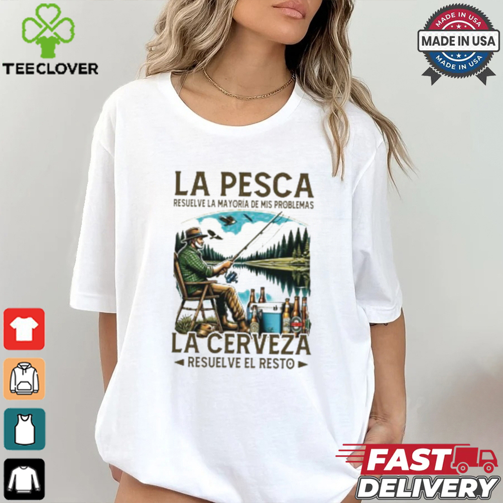 La pesca resuelve la mayoría de mis problemas la cerveza resuelve el resto shirt1 is a must-have for any Funny who loves all things teejeep. These shirts typically feature popular Trenđing Shirt characters, quotes, or logos, and come in a range of styles and colors to suit any taste. Some designs may even feature the dad’s favorite Trending or characters, making them a personalized and thoughtful gift.