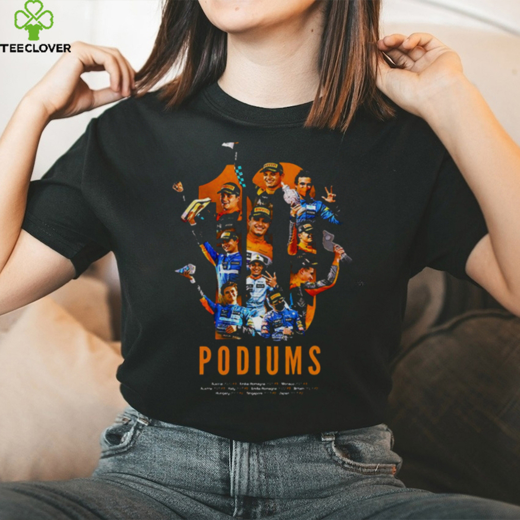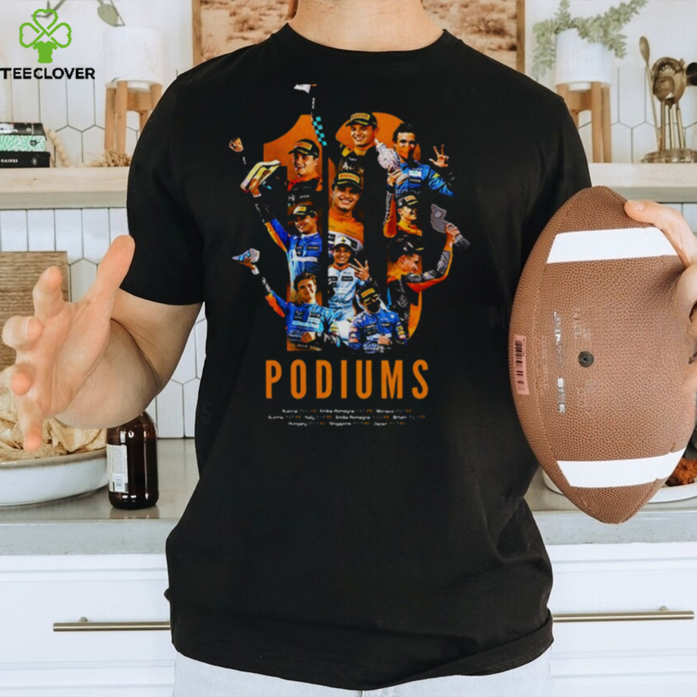 ()Lando Norris Ten And Counting Podiums McLaren F1 T Shirt, Hoodie, Sweater, Vneck, Unisex and T-shirt