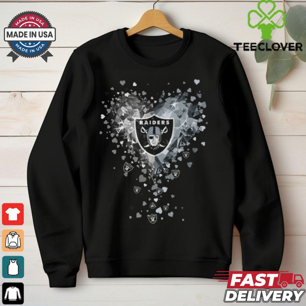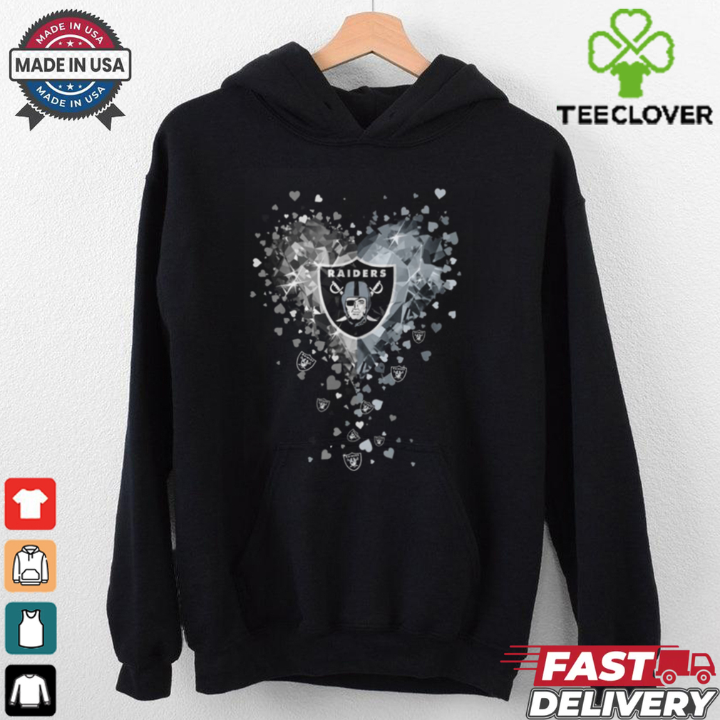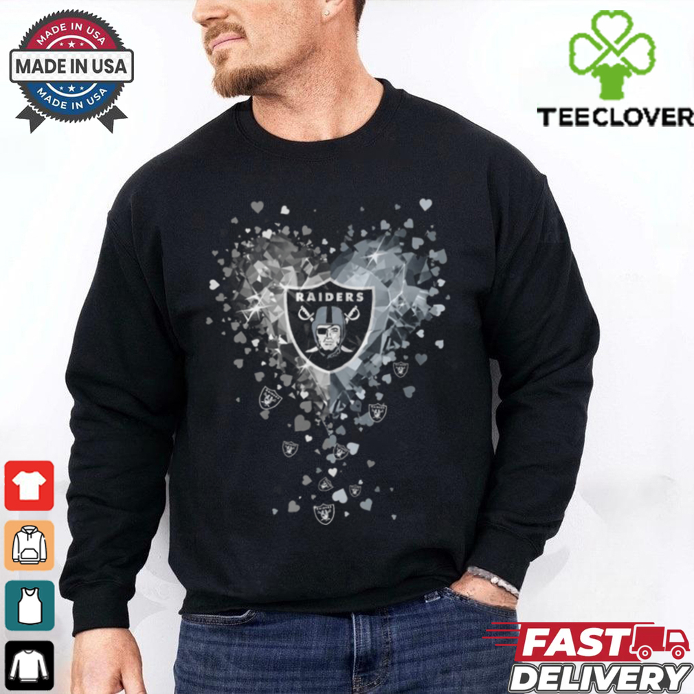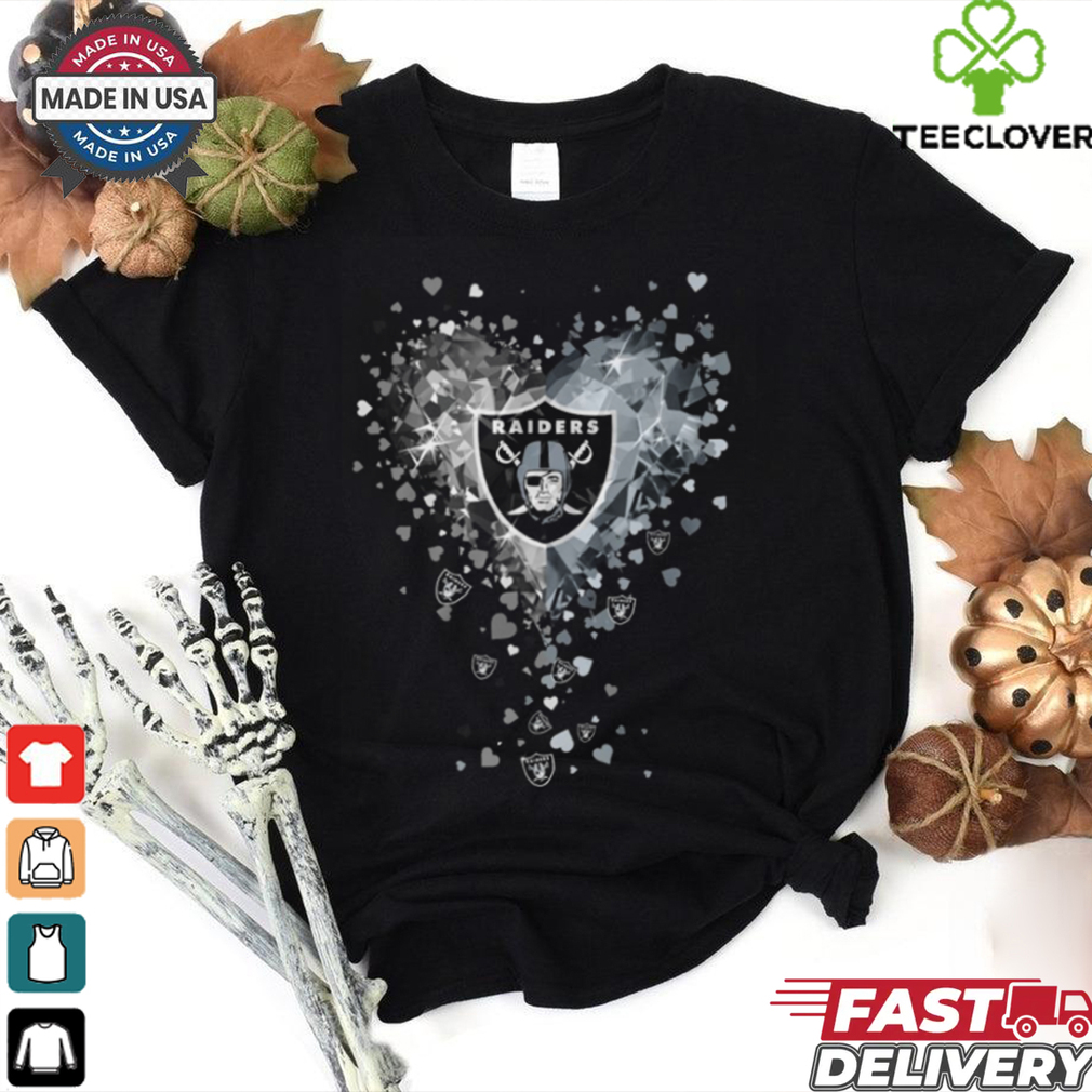 About 2 months later, I ended up going to Las Vegas Raiders Crystal Heart Shirt , and thanks to having everything cleared up, I only ended up with 40 hours of community service. But still, this is something that could have messed up things until I turned 18. Still, everything was straightened out, the store had decided not to press any charges and the judge had his giggles at my expense. In the end, there was no damage and my actions werenโt intentional to peek at women so blatantly and incompetently after all, and store cameras confirmed that I had run in suddenly in a panic and dropped everything, which matched my story.