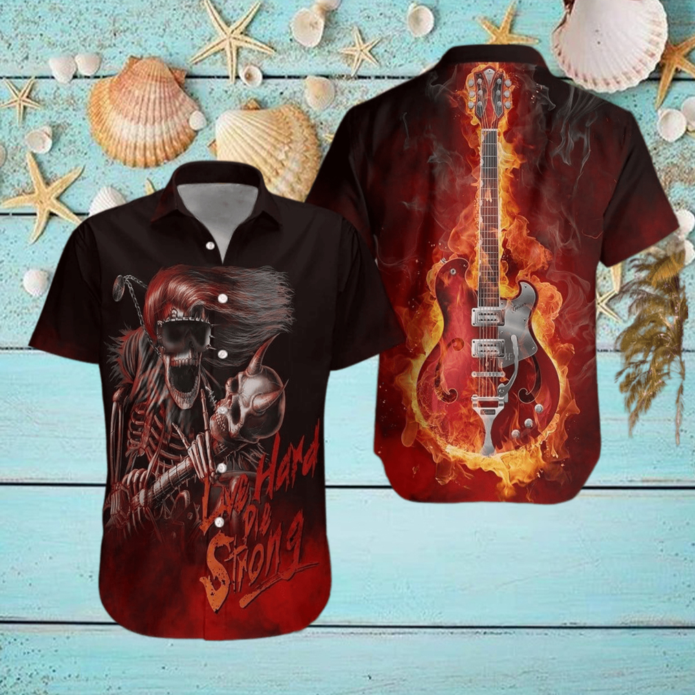 Live Hard Die Strong Skull Guitar Hawaiian Aloha Shirts,