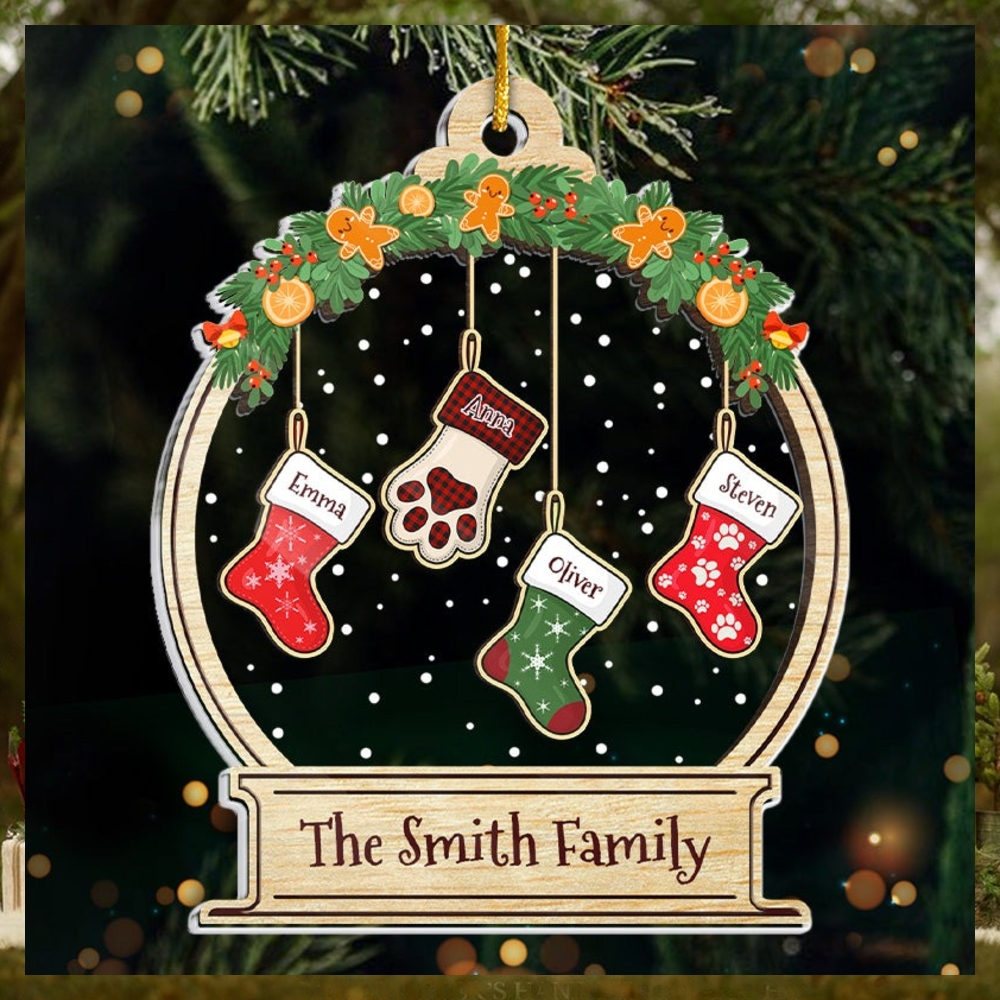 ()Lovely Stockings Hanging Family Personalized Custom Ornament Acrylic Snow Globe Shaped Christmas Gift For Family Members,