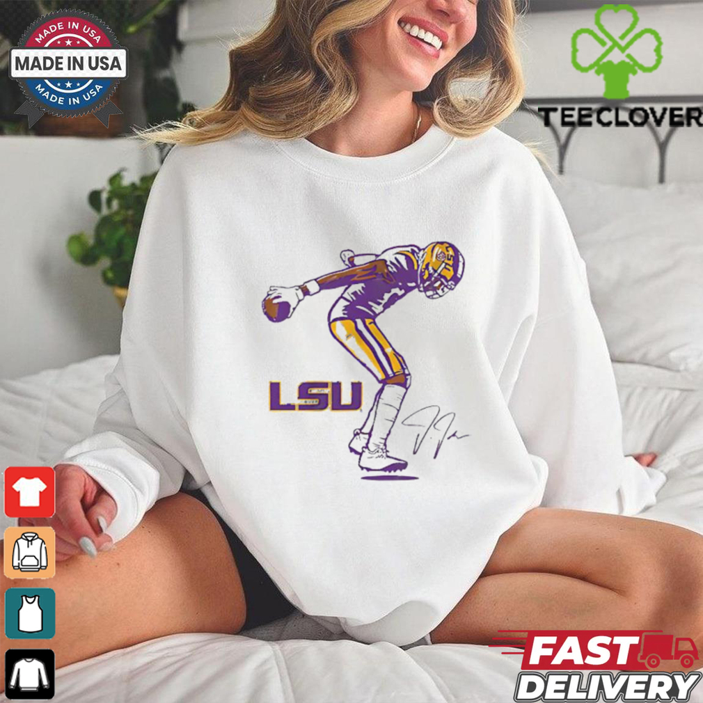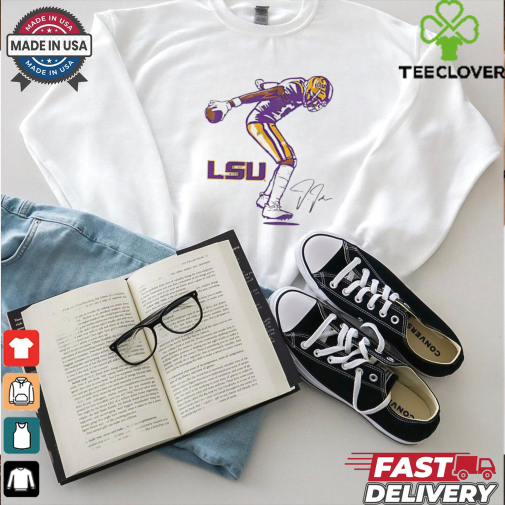 To synthesize, buyers from these LSU Tigers Justin Jefferson graphic signature shirt identify brands that fit the type of client theyโd like to serve and seek out their collections. They may attend fashion week to see shows of ready-to-wear labels, or they may simply email a t-shirt brand with a request for an order. The best stores ensure that they are constantly receiving new product from different brands to keep their customers interested and coming back. This is an important facet of merchandising strategy to keep in mind when planning to open your own store.