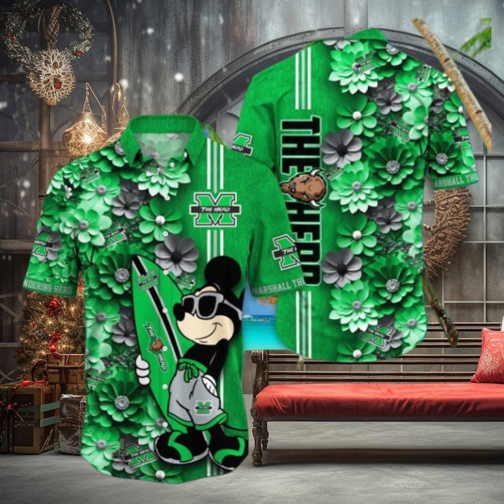 Best Marshall Thundering Herd Hawaiian Shirt Mickey Love Surfing Trending Summer Gift