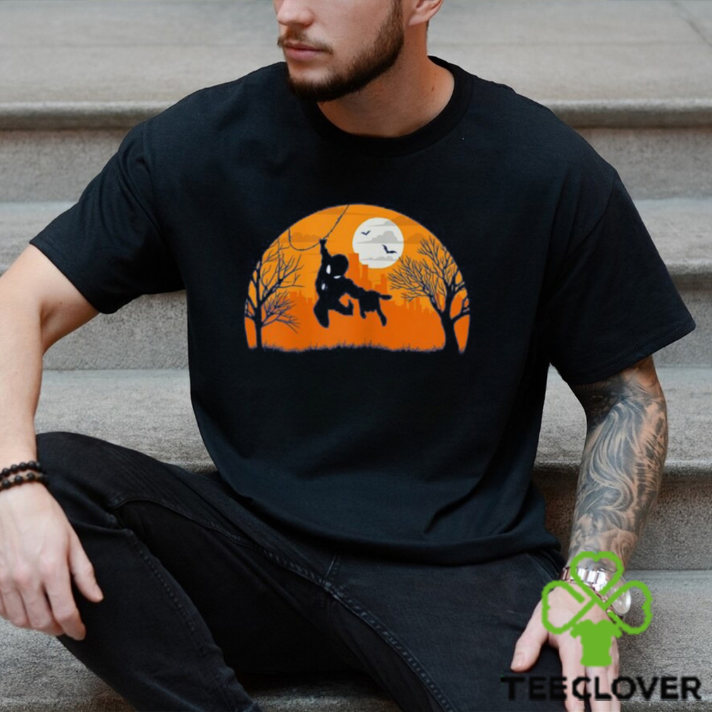 Marvel Spider Man Silhouette Swing Halloween T Shirt, Spider Man Moon Batman Tee