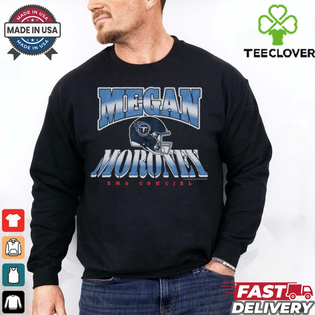 Much more as well as a lot Megan Moroney x Tennessee Titans Helmet Tee Navy shirt well-known T-shirts were actually tailored and also produced throughout the Psychedelic period, consisting of even more as well as extra home-made practices. Band T-shirts came to be an additional exceptionally well-known type of T t-shirt, inexpensively published as well as marketed at real-time jobs as well as gigs of the time, the practice proceeds to the current, band T shirts are actually as well-known as ever before, nonetheless the rate of all of them has actually increased considerably.
