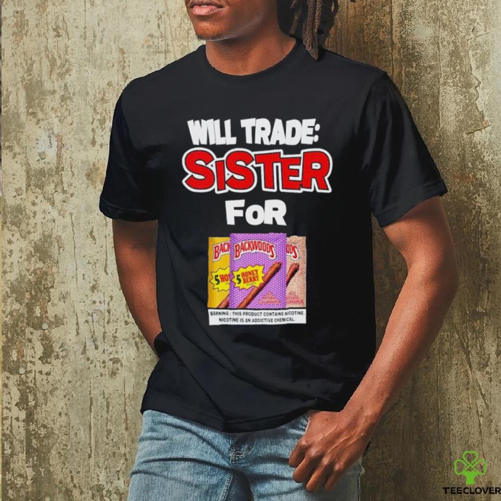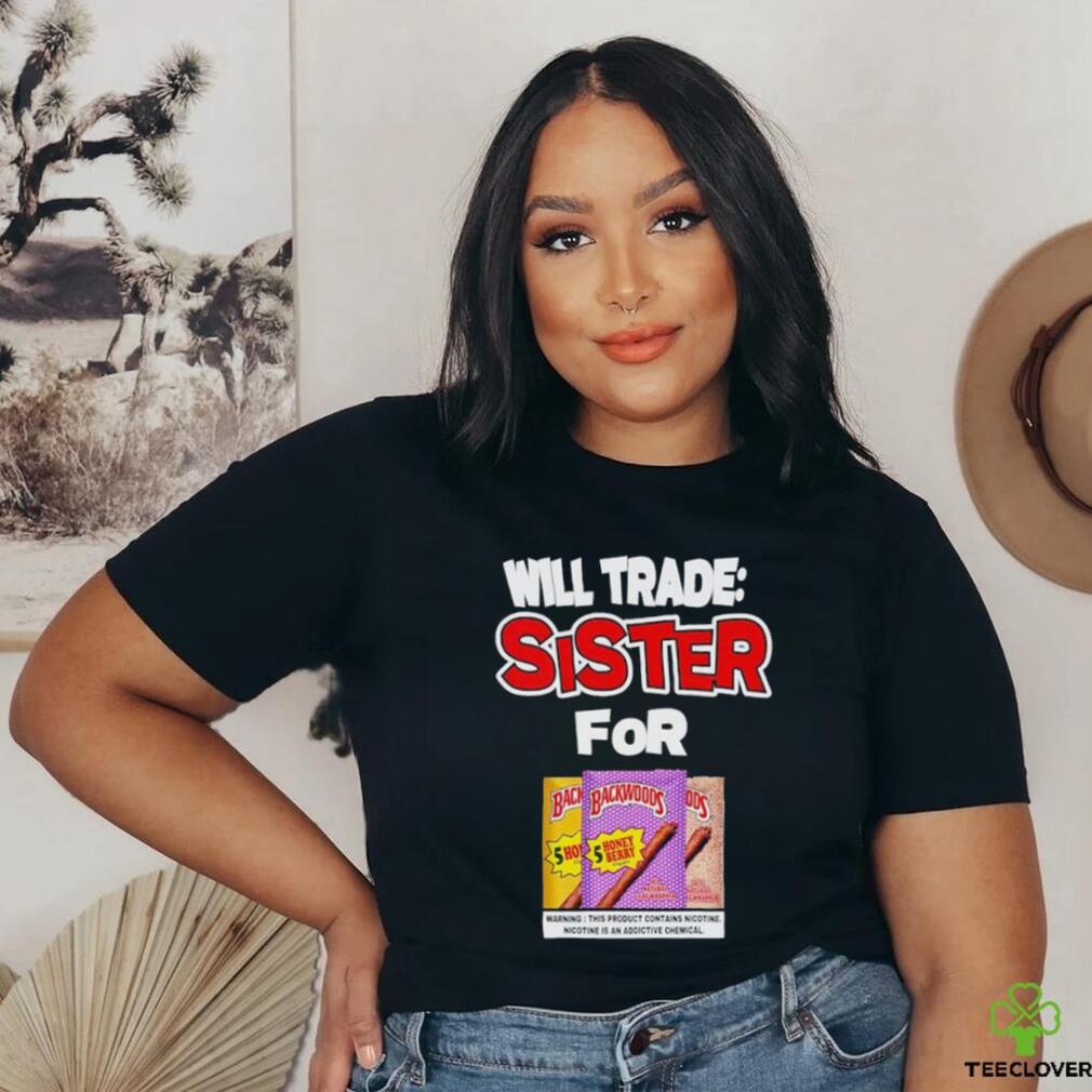 Men’s Will trade sister for Backwoods shirt1 is a must-have for any Funny who loves all things teejeep. These shirts typically feature popular Trenđing Shirt characters, quotes, or logos, and come in a range of styles and colors to suit any taste. Some designs may even feature the dad’s favorite Trending or characters, making them a personalized and thoughtful gift.