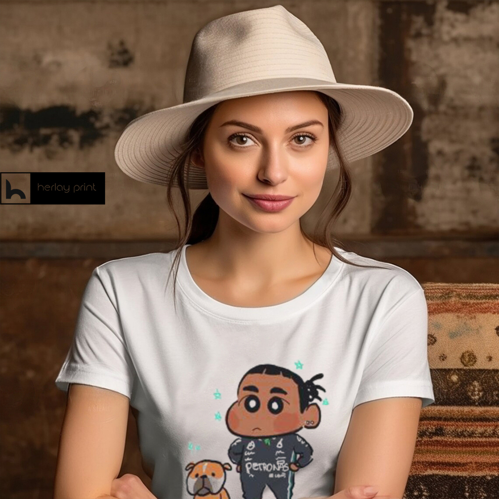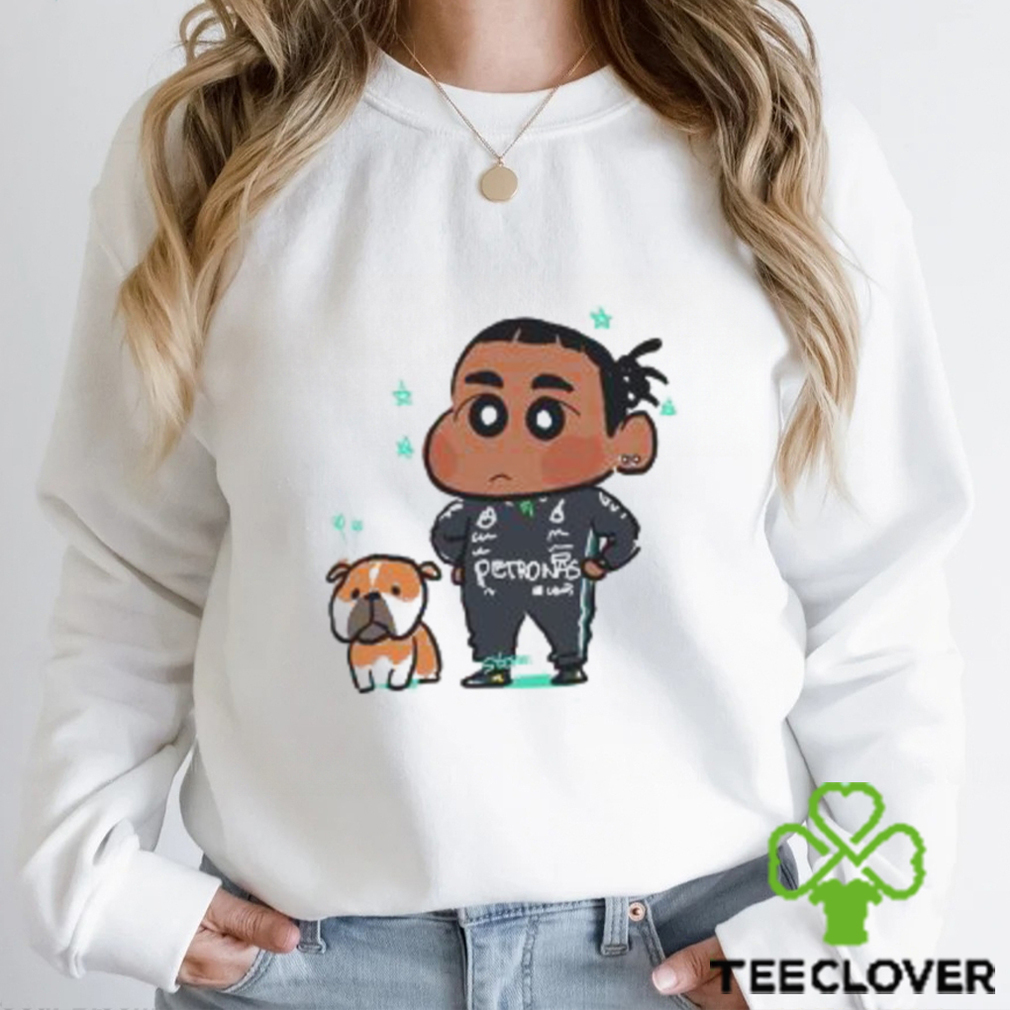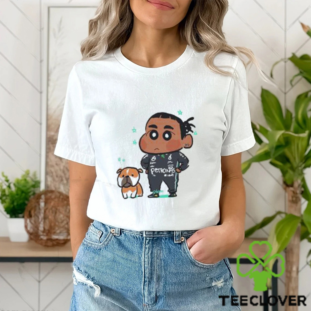 ()Mercedes AMG F1 Driver Lewis Hamilton And His Dog Roscoe In The Style Of Crayon Shin Chan Unisex T shirt hoodie, tank top, sweater and long sleeve t-shirt