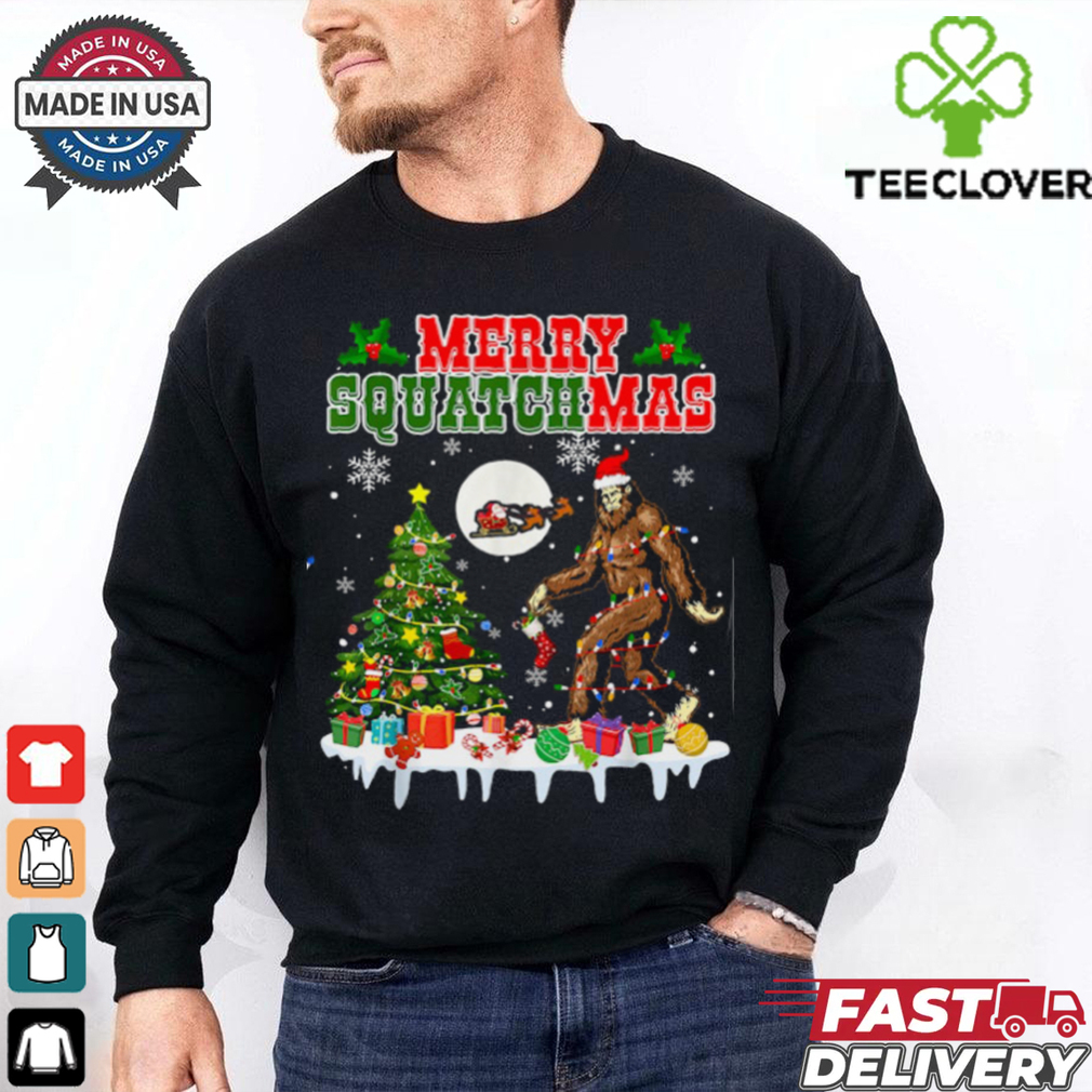 ()Merry Squatchmas Christmas Tree Santa Bigfoot Sasquatch T Shirt Recovered hoodie, tank top, sweater and long sleeve t-shirt: best style for you