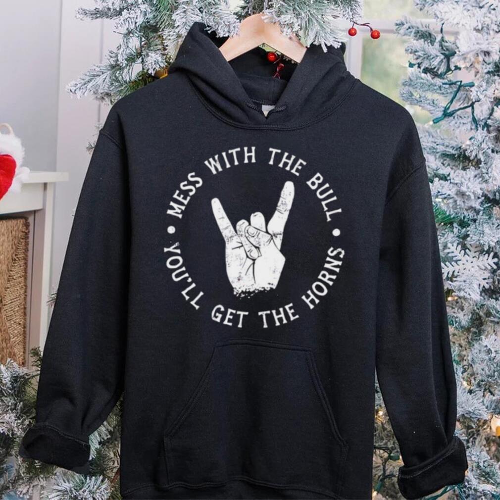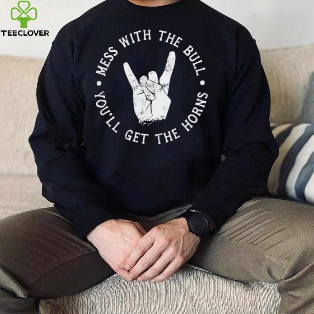 The Mess with the bull you’ll get the horns shirt to when Beethoven first realizes his deafness and he explains that Theresa would not love him were she to know. He is then shown Theresa’s reaction to his unexplained absence and he realizes that his deafness is the cause of all his problems. Fate explains that if she cures his deafness his music will suffer, as the Muses would not be heard as easily through the everyday sound. He thus withdraws his request. Beethoven is then shown that Theresa would have loved him forever and he becomes very sorrowful. But Fate then offers visions of the countless musicians of the future who would be influenced by Beethoven’s works. As one last, ultimate vision he is allowed to improvise with the musicians of the past and future who were inspired by him. Realizing that removing the hardships from his life would destroy his music, Beethoven informs Fate that he will not change any part of his life.