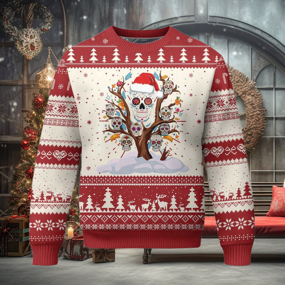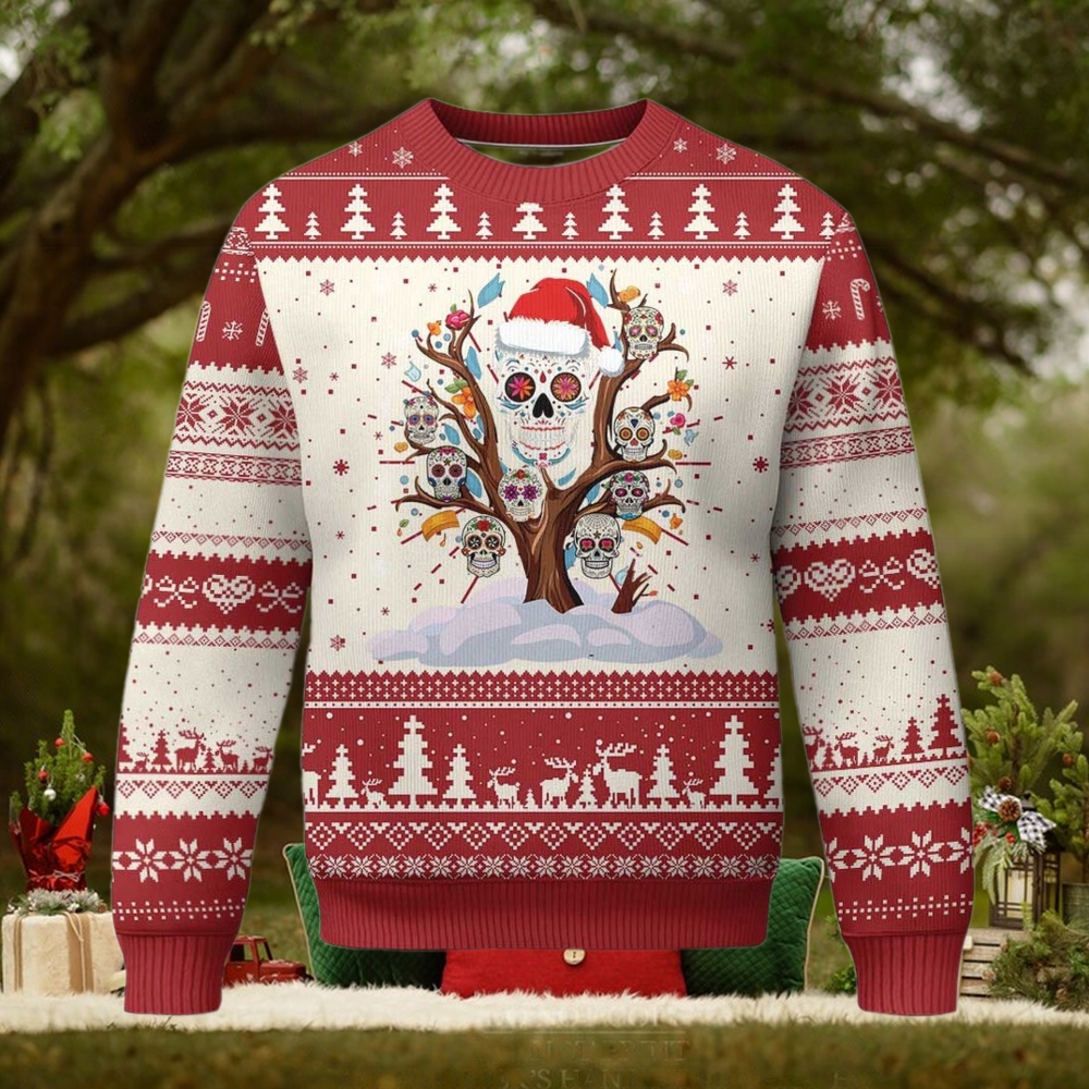 ()Mexico Xmas Ugly Christmas Sweater Sugar Skull On Tree Funny Xmas,