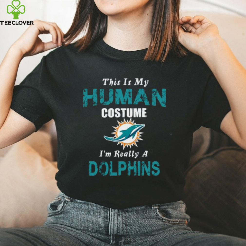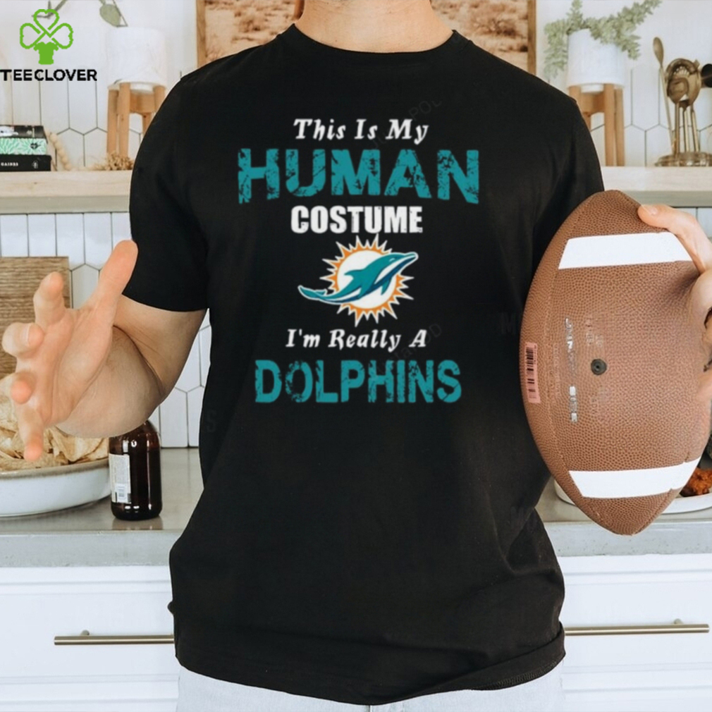 Best Miami Dolphins T shirt This Is My Human Costume Im Really A Funny