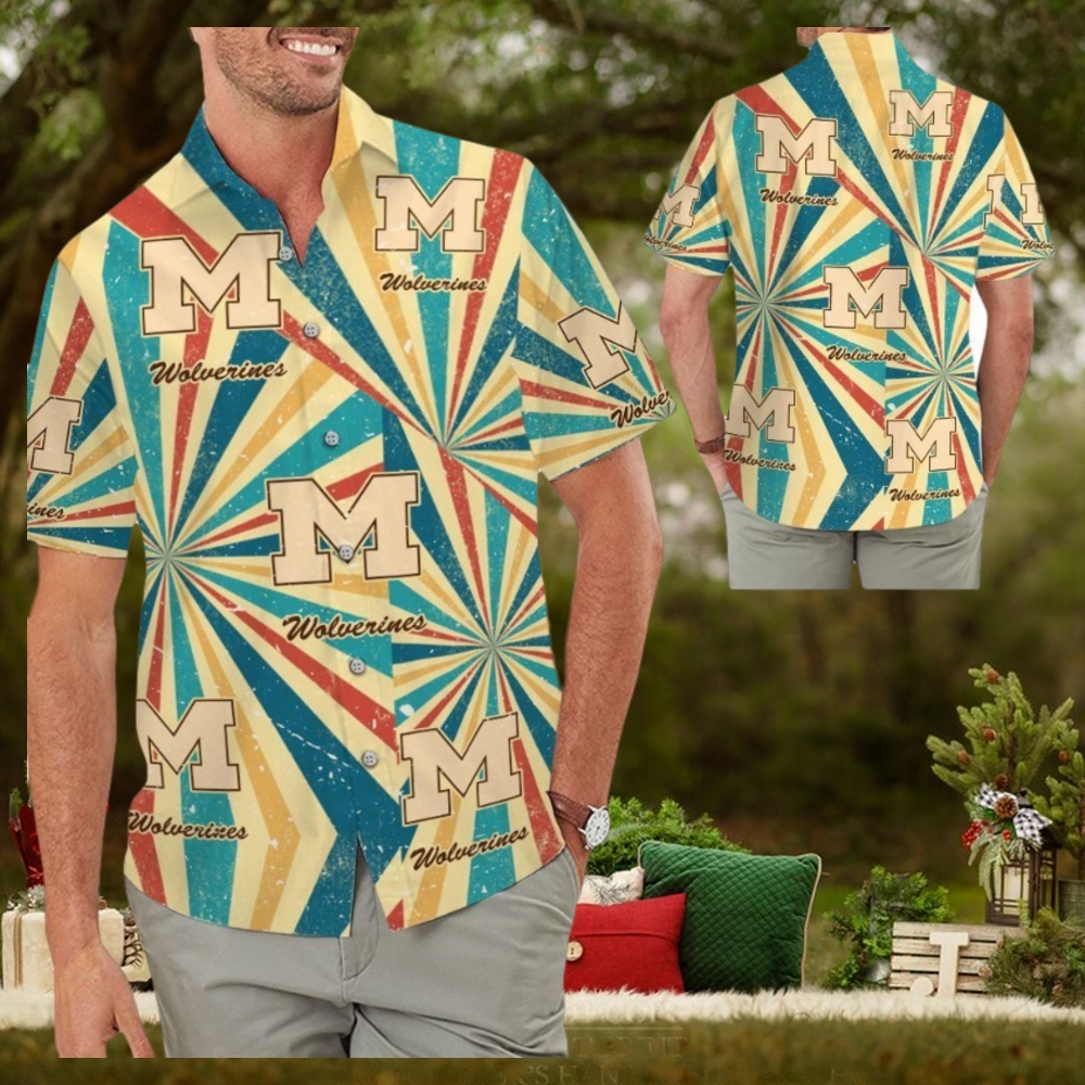 ()Michigan Wolverines Retro Vintage Style Hawaiian Shirt BeacSummer,