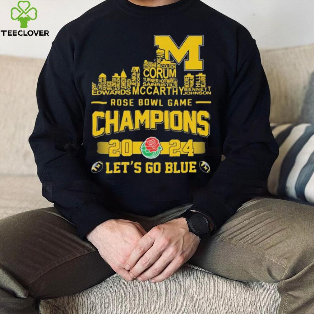 ()Michigan Wolverines Skyline Players Name 2024 Rose Bowl Game Champions Let’s Go Blue Shirt