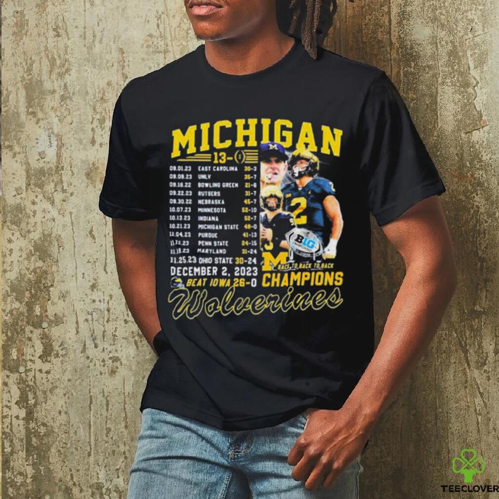 ()Michigan Wolverines Undefeated 13 0 Back To Back To Back Champions Schedule Shirt, Hoodie, Sweater, Vneck, Unisex and T-shirt