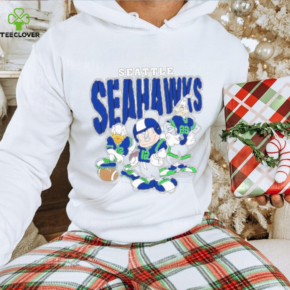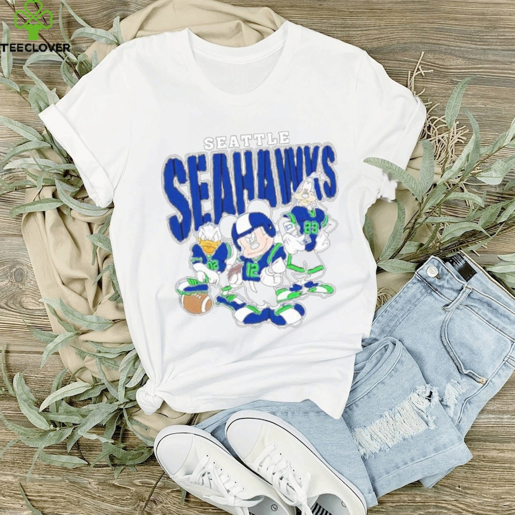 The Mickey and Friends Seattle Seahawks T Shirt to answering your question is experience. We exist to experience; we know we exist because we experience our own existence. The second key is observation. We observe our existence, our experience. We witness, record, and reflect upon our experience. The third key is intention. From observations of our experiences, we build a theory of “reality”, and make choices to act or not act based on that theory. We form an intention to create a specific experience that we want to observe. Now we have a sufficient solution to the problem. Experience, observation, and intention together create reality. They cannot exist without each other. None is more fundamental than the other, and none can be removed without destroying the others. Experience, observation, and intention: the grand experiment. We exist to try things, experience them, and observe the result. There is no meaning beyond that; when we are gone, all those things are gone too. We should use the little time we have to make as many experiments as possible. We have been blessed with the opportunity to experience, observe, and intend, and we should not waste it.