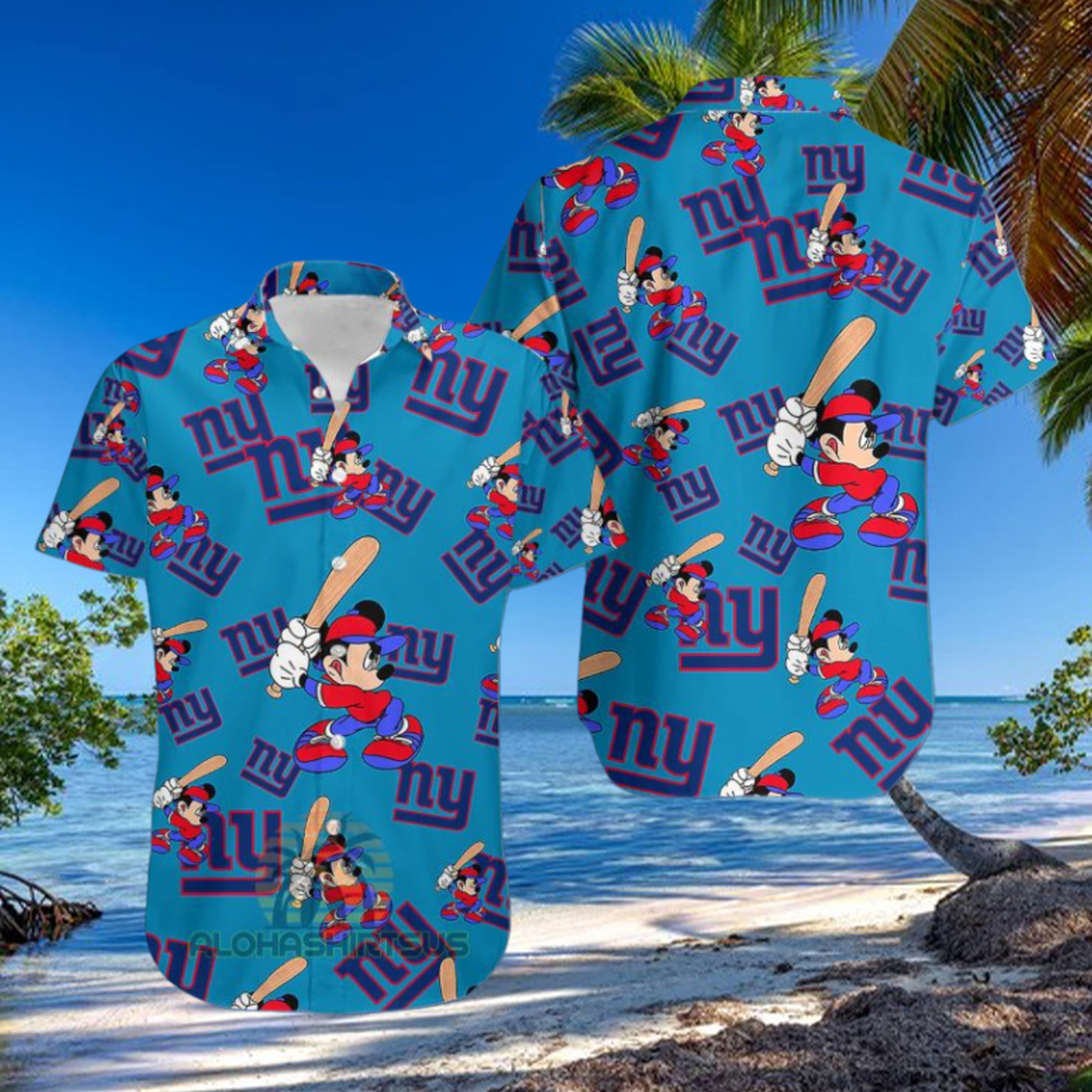 Best Mickey Mouse Baseball New York Giants Sapphire Hawaiian Camp Shirt