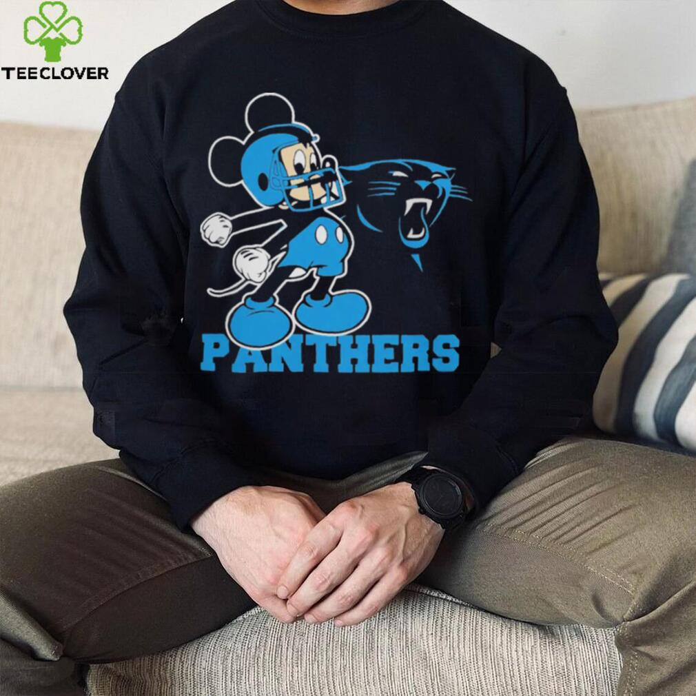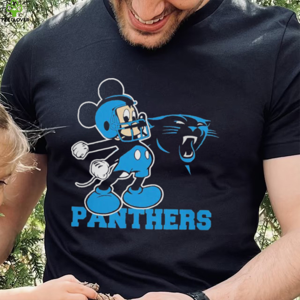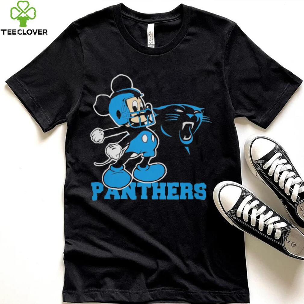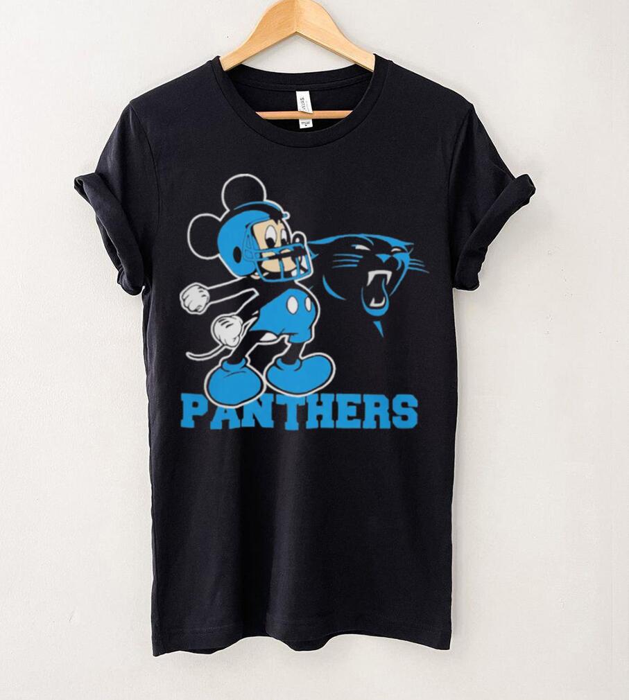 Mickey mouse cartoon Carolina panthers football player helmet logo shirt