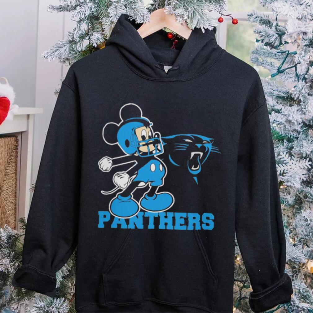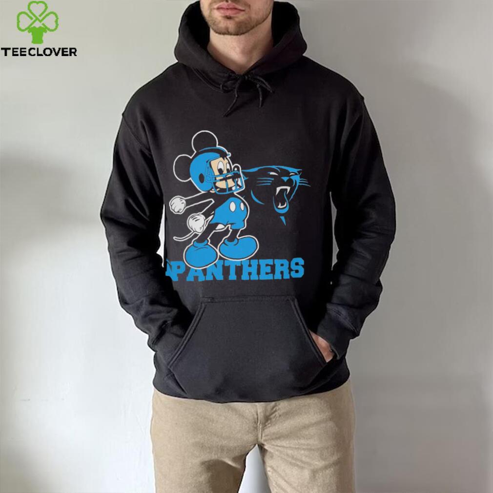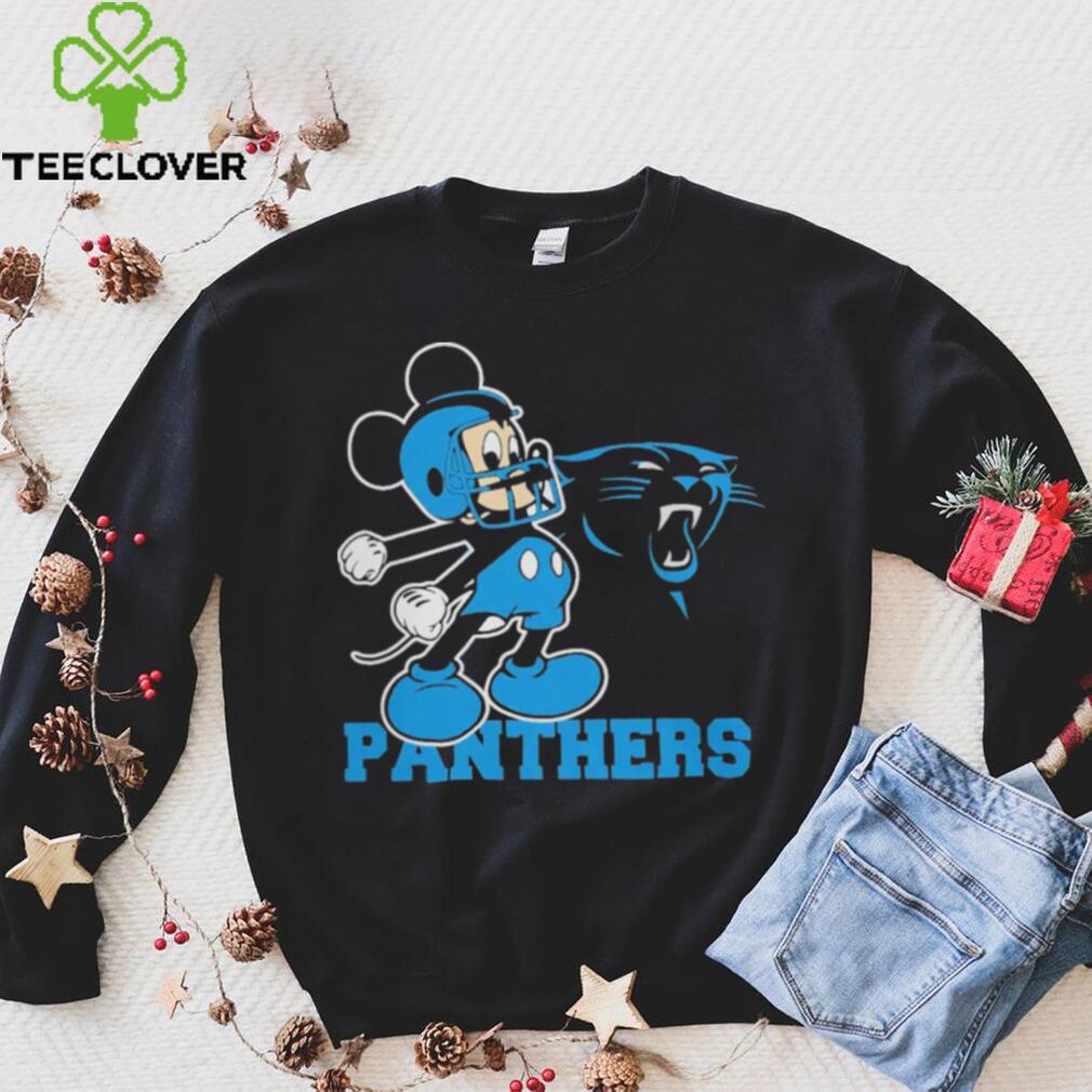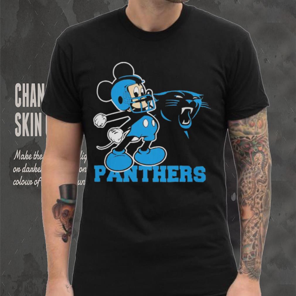 Mickey mouse cartoon Carolina panthers football player helmet logo shirt