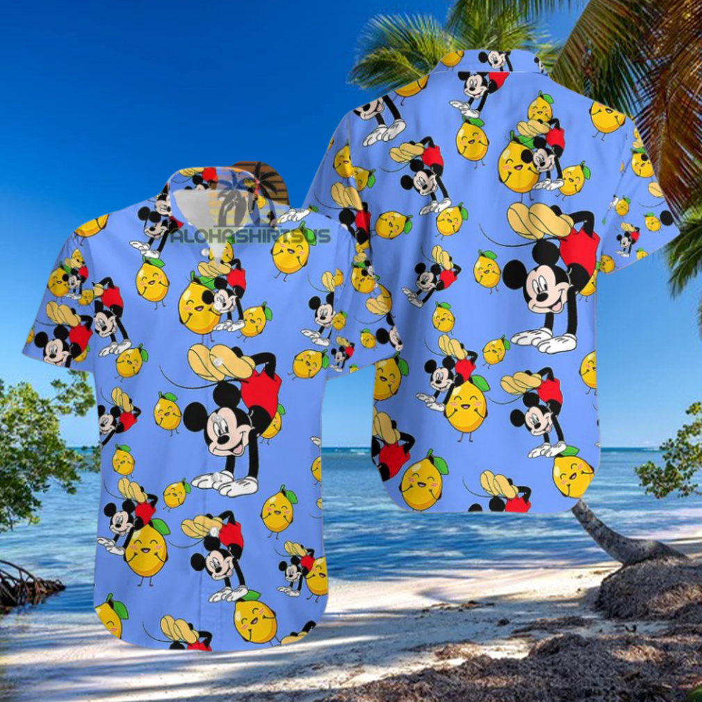 Best Mickey Mouse Hip Hop Lemon Blue Western Hawaiian Shirt