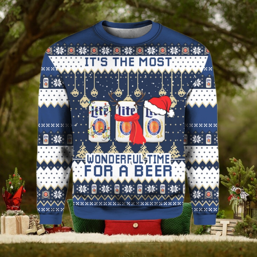 ()Miller Lite It The Most Wonderful Time For A Beer Ugly Sweater,