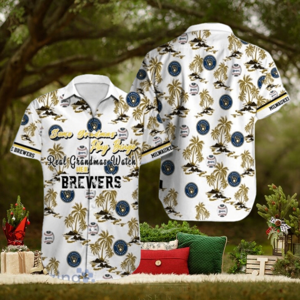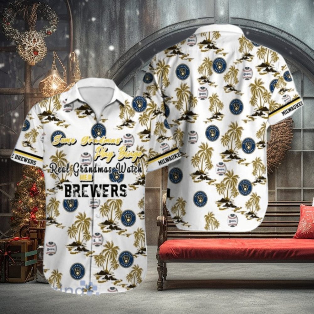 ()Milwaukee Brewers MLB Coconut Pattern White Hawaiian Shirt,