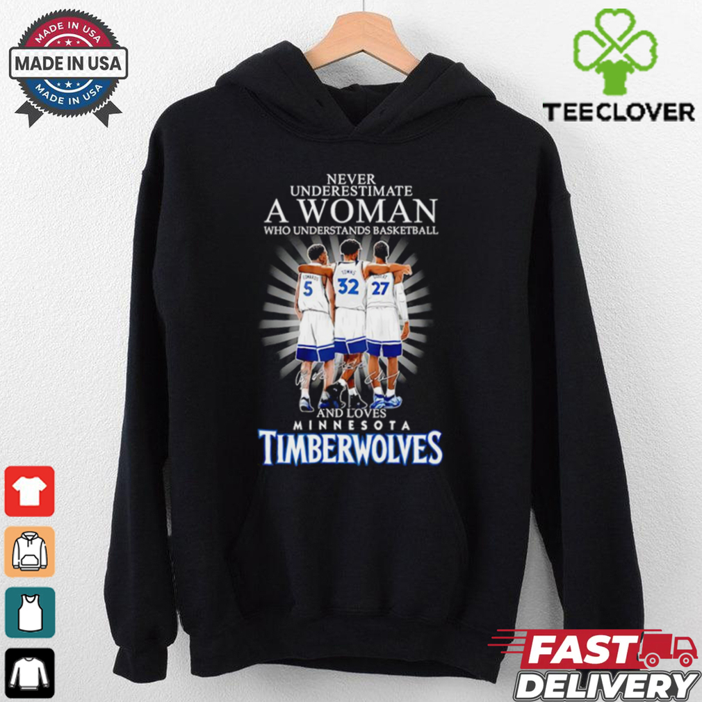 ()Minnesota timberwolves never underestimate a woman and loves shirt hoodie, tank top, sweater and long sleeve t-shirt: best style for you