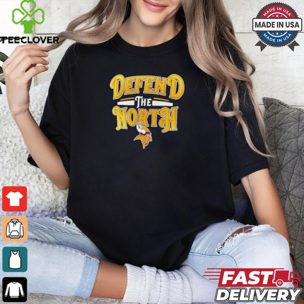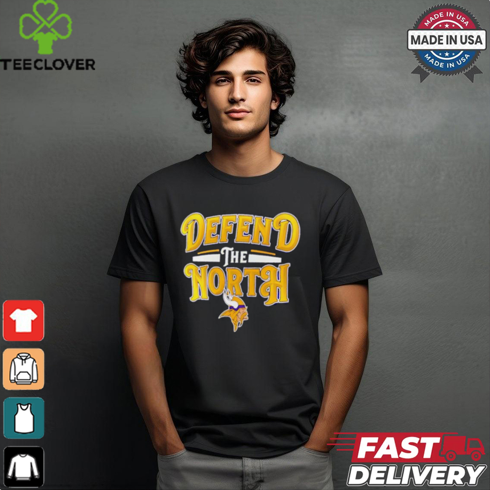 As a percentage of the federal budget, Minnesota Vikings Defend the North logo shirt budget peaked in 1966, immediately saw a ~20% decrease within four years, and itโs been downhill ever since, save for a bump in the early nineties. Under Nixon, ambitious post-Apollo plans were killed and the STS (Space Transport System; aka, the Space Shuttle) wound up becoming a sort of last-ditch option to preserve manned spaceflight. Itโs been a battle ever since to fund NASAโs missions for a number of reasons.