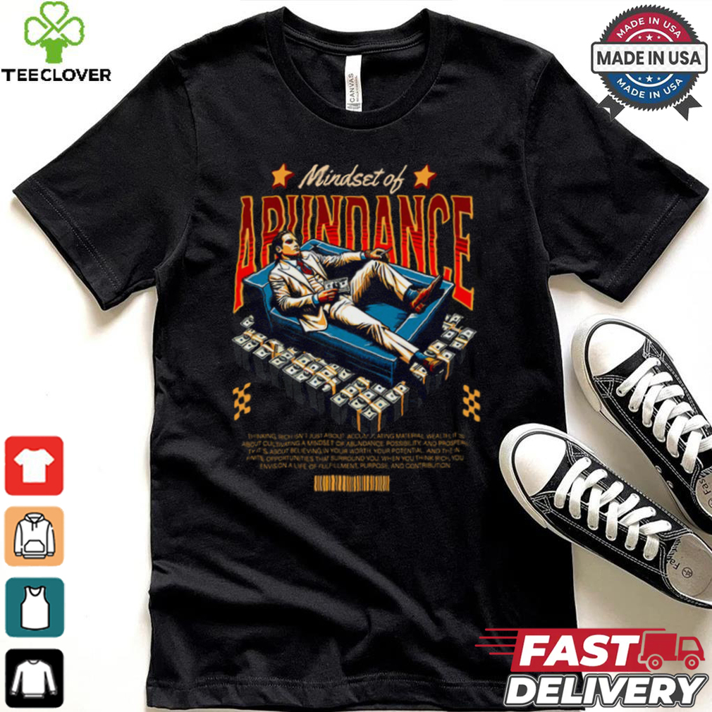 You can wear whatever you want, but remember: This is the office party. This is a Money Mindset Of Abundance T Shirt of people with whom you work, so if you wouldn’t wear a revealing dress to work, don’t wear it to the office party. Also, don’t drink much you presumably know your limit, so stop well short of it. Because again—you work with these people. When I worked at TV Guide, senior staff regularly attended the Christmas parties, which (at least at the beginning) were lavish, usually held in off-site venues and allowed employees to bring spouses. You don’t want your boss’s boss asking who that was—the girl in the thigh-high bandage dress and hooker heels or the guy who threw up on the white-glitter sparkle Christmas tree. Women get the brunt of the judgmental post-party gossip about attire while men generally have to do something memorably bad, but I imagine a male manager showing up in gold lame hot pants would cause a stir in most business environments.