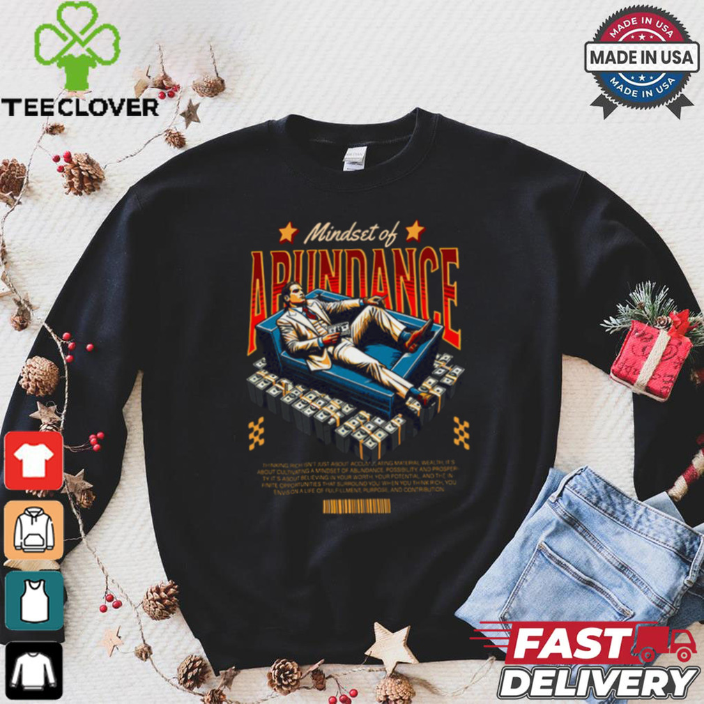 The Money Mindset Of Abundance T Shirt to when Beethoven first realizes his deafness and he explains that Theresa would not love him were she to know. He is then shown Theresa’s reaction to his unexplained absence and he realizes that his deafness is the cause of all his problems. Fate explains that if she cures his deafness his music will suffer, as the Muses would not be heard as easily through the everyday sound. He thus withdraws his request. Beethoven is then shown that Theresa would have loved him forever and he becomes very sorrowful. But Fate then offers visions of the countless musicians of the future who would be influenced by Beethoven’s works. As one last, ultimate vision he is allowed to improvise with the musicians of the past and future who were inspired by him. Realizing that removing the hardships from his life would destroy his music, Beethoven informs Fate that he will not change any part of his life.