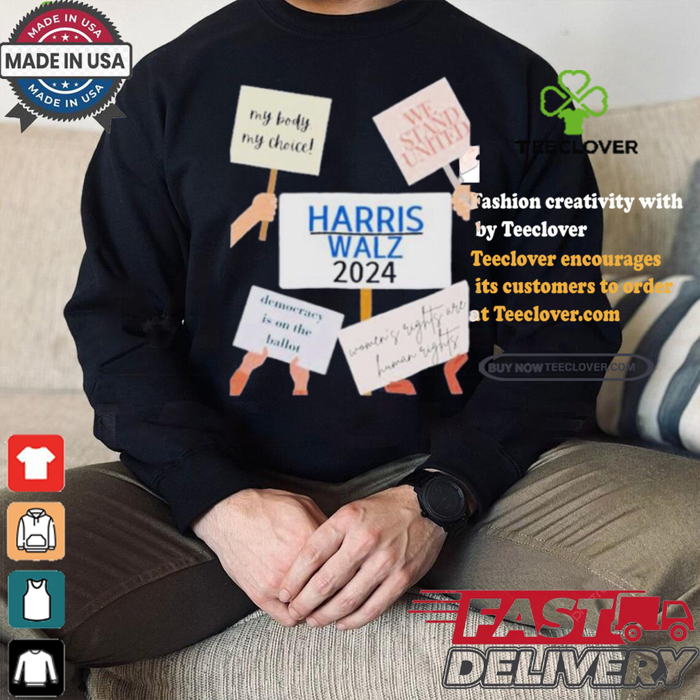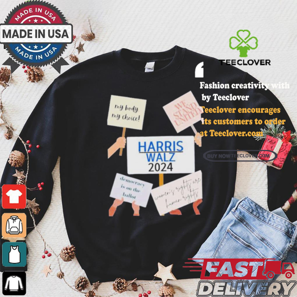 ()My Body My Choice We Stand United Harris Walz 2024 Democracy Is On The Ballot T shirt