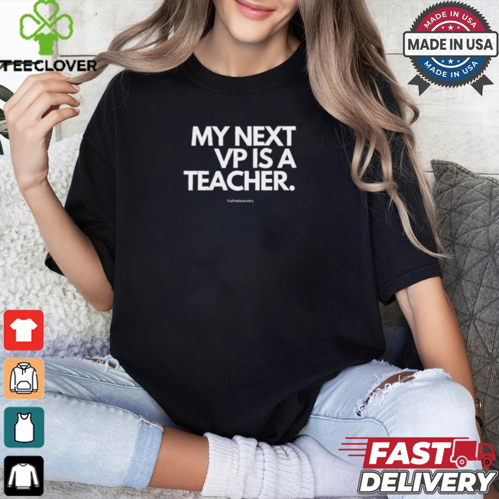 Now backstory on my mother. She’s been on dialysis for My Next Vp Is A Teacher Shirt years. Her kidneys don’t work so toxins and fluids don’t get removed from her body like normal (she does not urinate). So doctors surgically connected a vein and an artery in her arm for maximum blood flow and every other day they insert 2 needles into this site. One takes blood out and puts it through the dialyis machine, removing excess fluids and toxins. The other returns the clean blood to her body. She goes for this 3 times a week.
