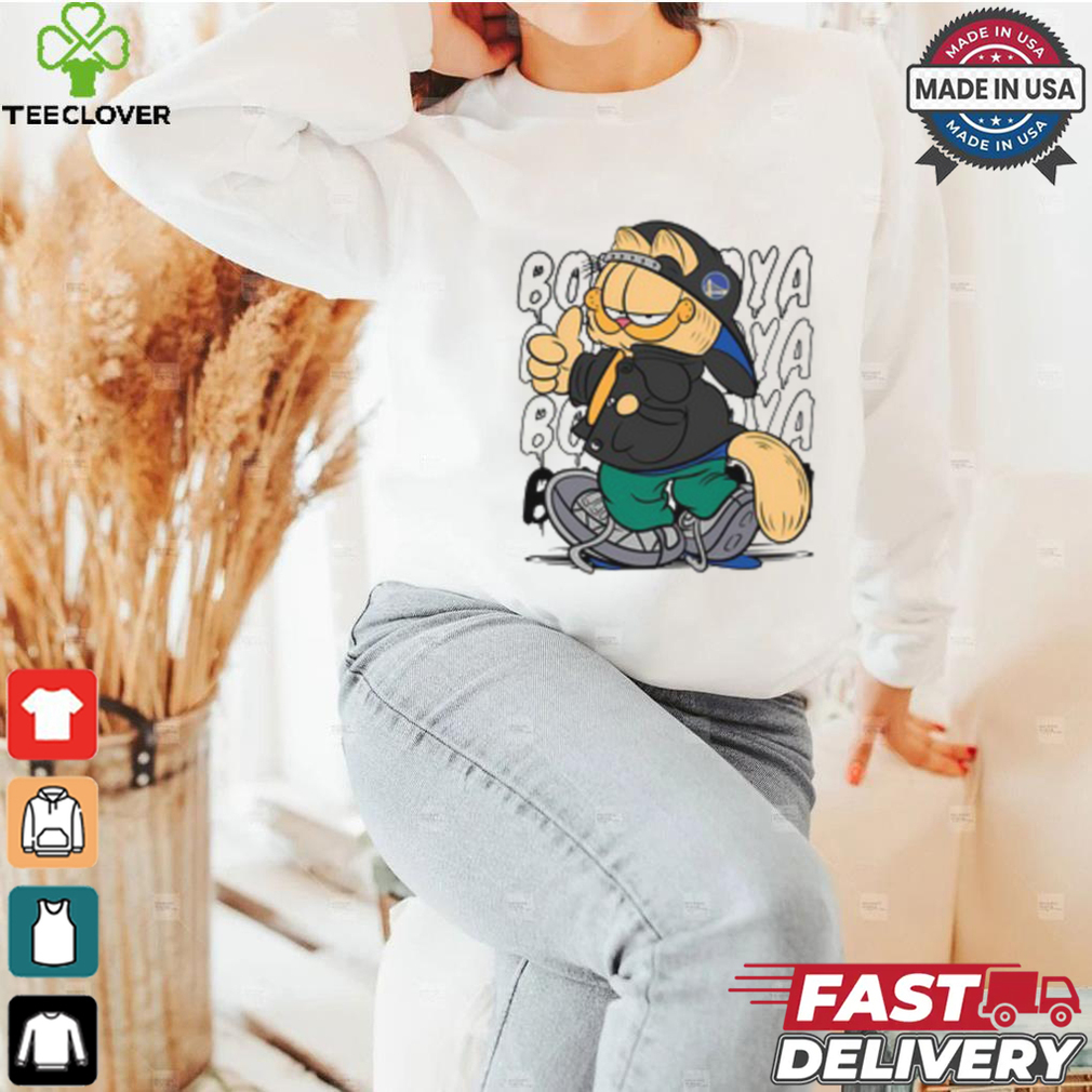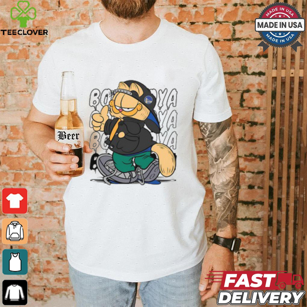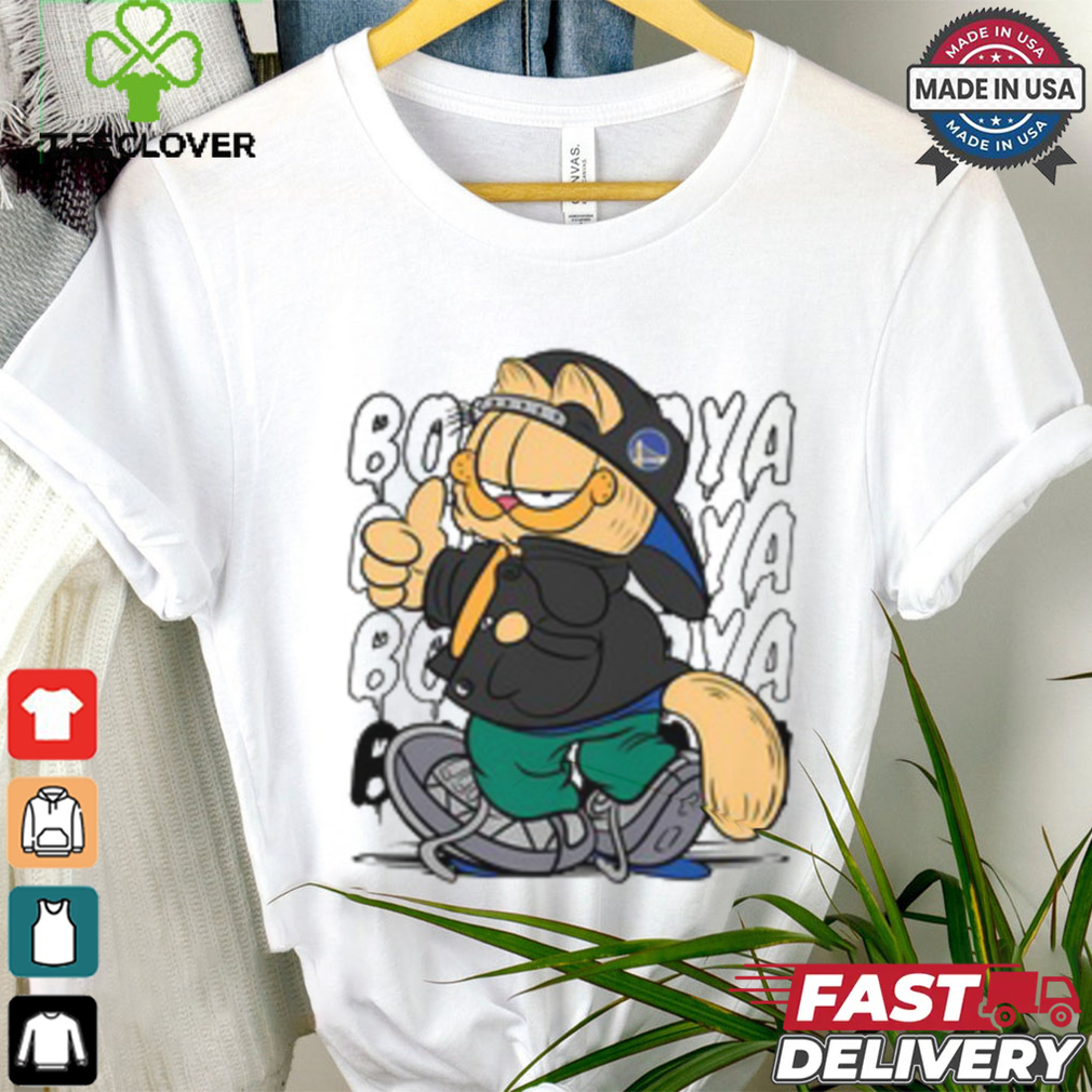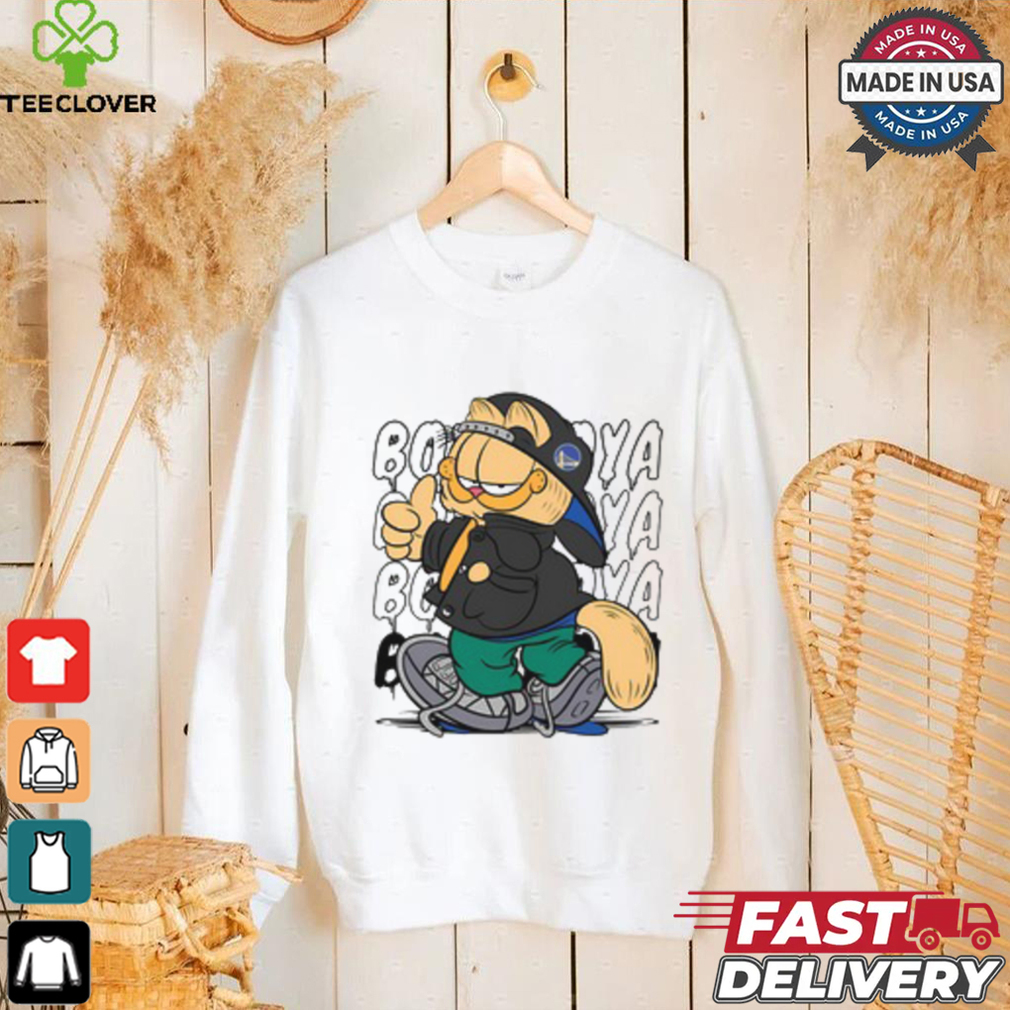 (The Bolshevik) sentinel slowly raised his head. But just at this moment the NBA Garfield Golden State Warriors T Shirt body of my friend rose up and blanketed the fire from me and in a twinkling the feet of the sentinel flashed through the air, as my companion had seized him by the throat and swung him clear into the bushes, where both figures disappeared. In a second he re-appeared, flourished the rifle of the Partisan over his head and I heard the dull blow which was followed by an absolute calm. He came back toward me and, confusedly smiling, said: “It is done. God and the Devil! When I was a boy, my mother wanted to make a priest out of me. When I grew up, I became a trained agronome in order. . . to strangle the people and smash their skulls? Revolution is a very stupid thing!” And with anger and disgust he spit and began to smoke his pipe.