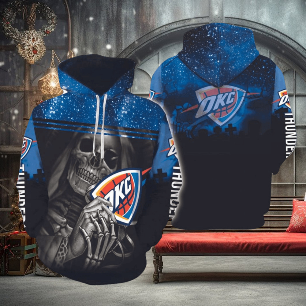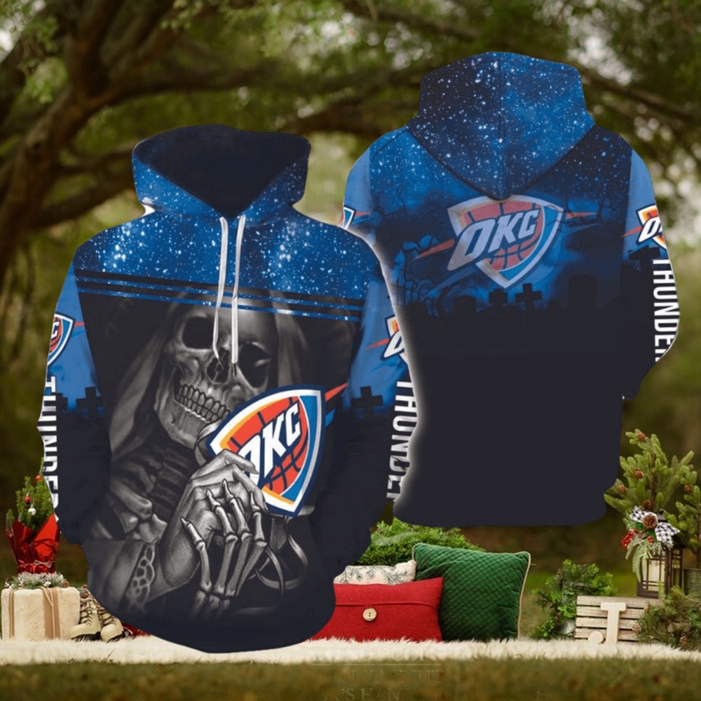 ()NBA Oklahoma City Thunder Night Halloween Skull Pullover Hoodie,