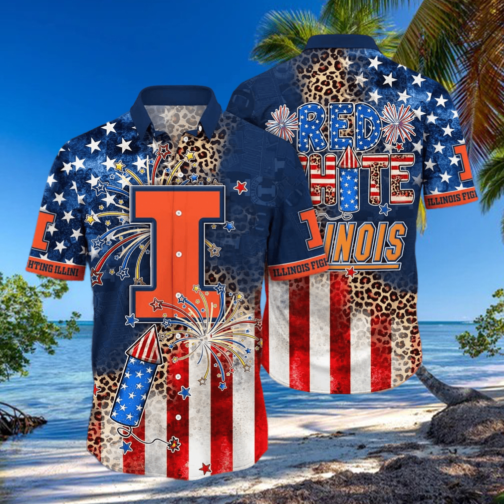 ()NCAA Illinois Fighting Illini Hawaiian Shirt Independence Day,