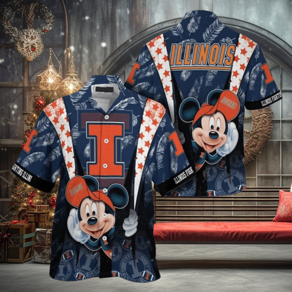 ()Ncaa Illinois Fighting Illini Mickey Mouse Trendy Hawaiian Shirt Aloha Shirt,