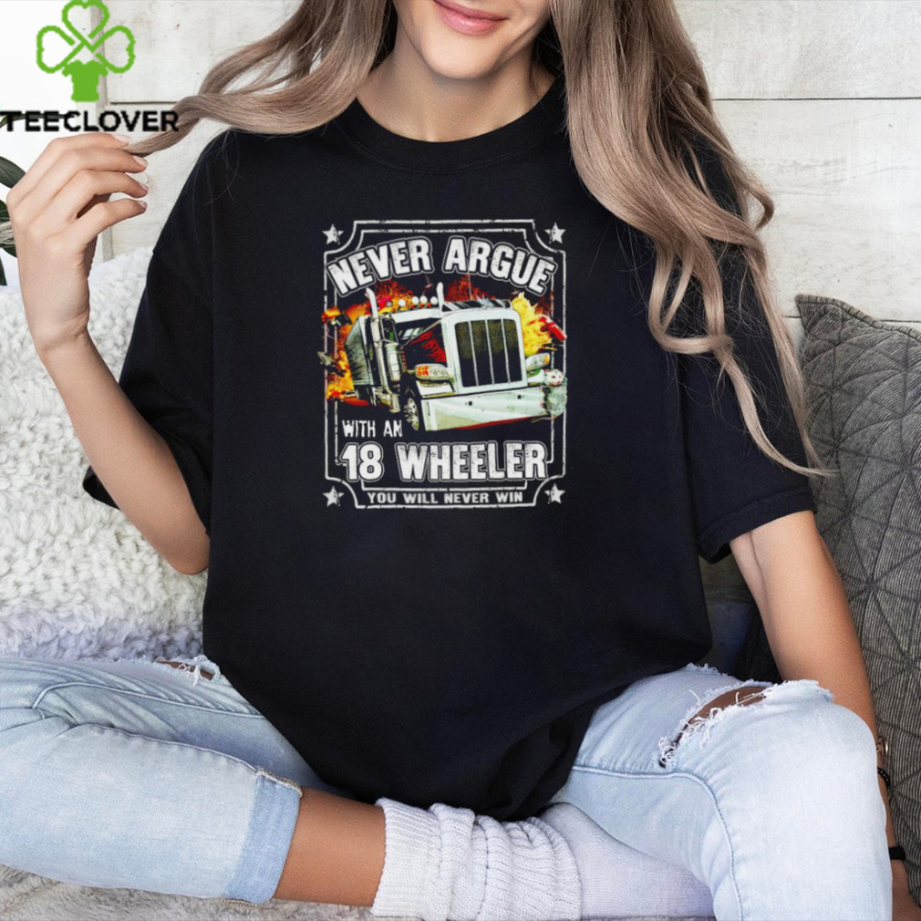 ()In 1963, I was 12 years old. We lived in South London and were travelling to Norfolk (east of England) for Christmas and New Year. In good weather, and light traffic, the Never argue with an 18 wheeler you will never win shirt would have been about 4 hours I think. There were no motorways then, and our route took us right through London and then up the A11. It started snowing before we were out of central London and by the time we reached Newmarket which was more than halfway, it was really thick on the road and Dad was getting worried about reaching our destination. We stopped and he went into a pub to phone the friends we were staying with. They said it was not so bad where they were and Dad decided to carry on, but the snow seemed to be following us. I was in the back seat, wrapped in coat and a blanket, Mum was wrapped in travel rugs in the front seat. I donβt recall our arrival, I had been asleep for ages, but I know it took us at least 6 hours probably 7, it was a real nightmare for Dad driving – even though he was very good as he was in the police and had had done an advanced driving course. The whole of the UK had a really cold snowy winter that year. Mum and I stayed on longer in Norfolk, Dad went back to London on the train to go to work and came back to collect us the following weekend.